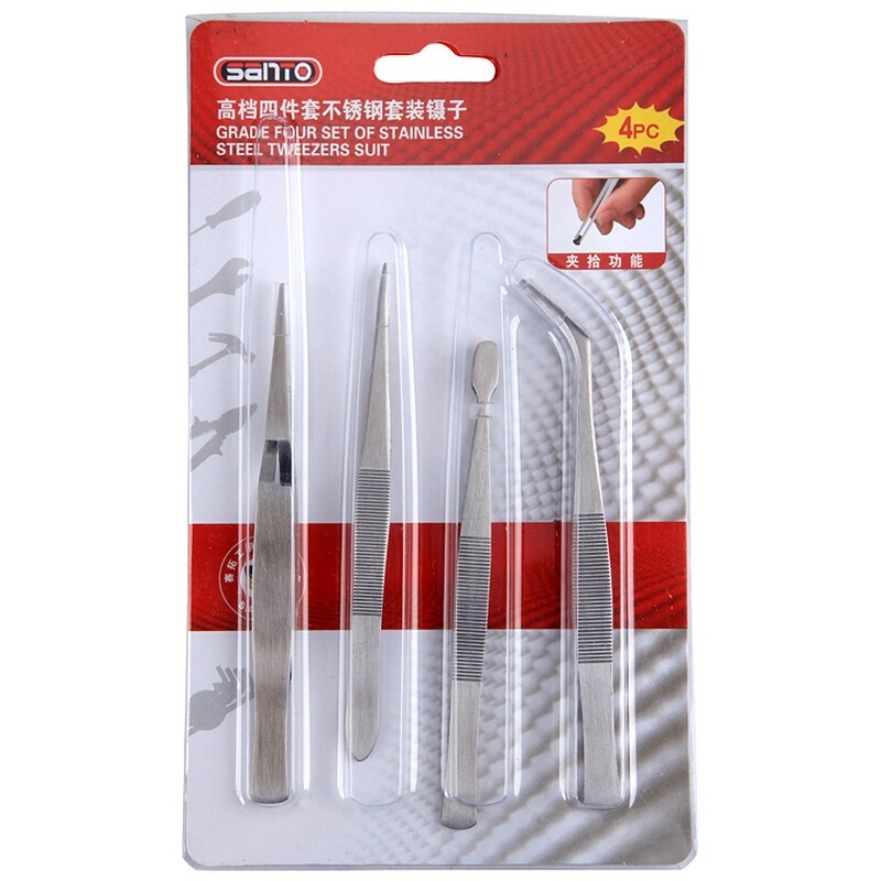 赛拓(SANTO)4件套不锈钢镊子套装弯头镊子+尖头镊子+弯嘴镊子+交叉镊子1383