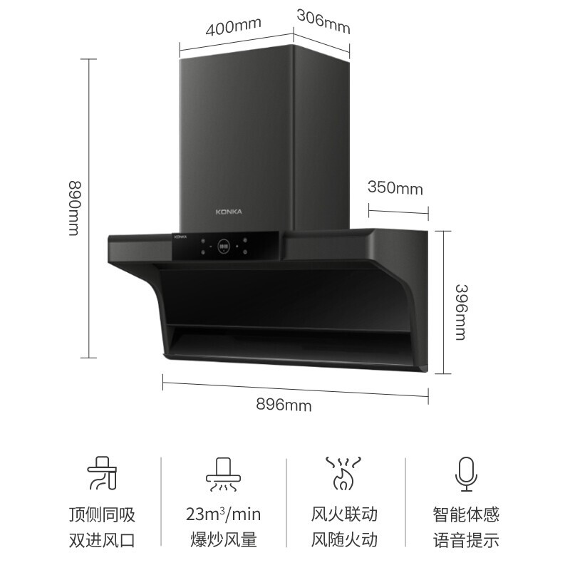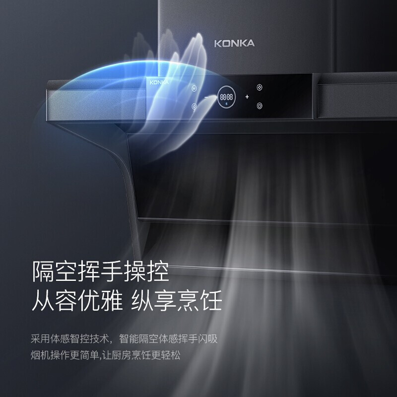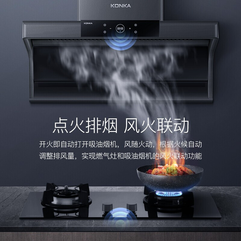 康佳(KONKA)抽油烟机家用7字型顶侧双吸23爆炒吸力排油烟机 自动清洗智能挥手控制高端款KA12 高端智能烟灶联动大风量油烟机KA12【单烟机】