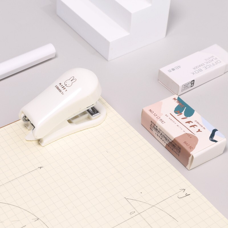 晨光(M&G)FBS916D6文具12#白色小型便携订书机 学生迷你订书器 米菲系列办公套装(订书器+订书钉)