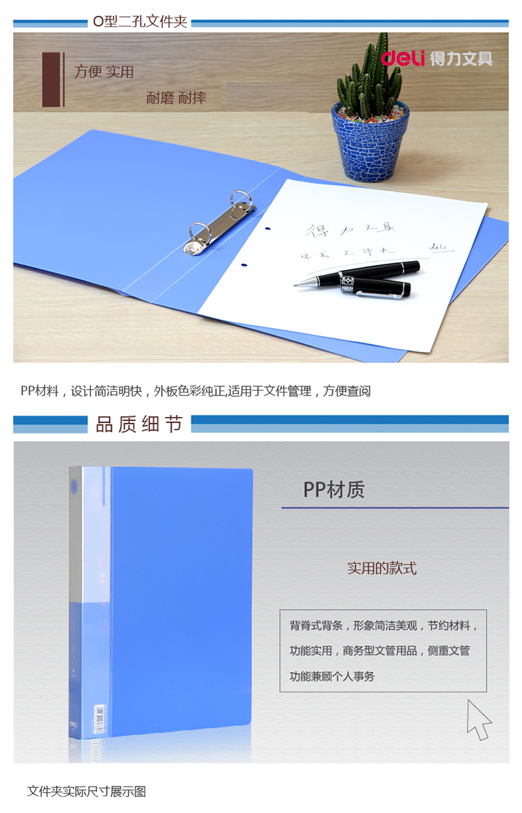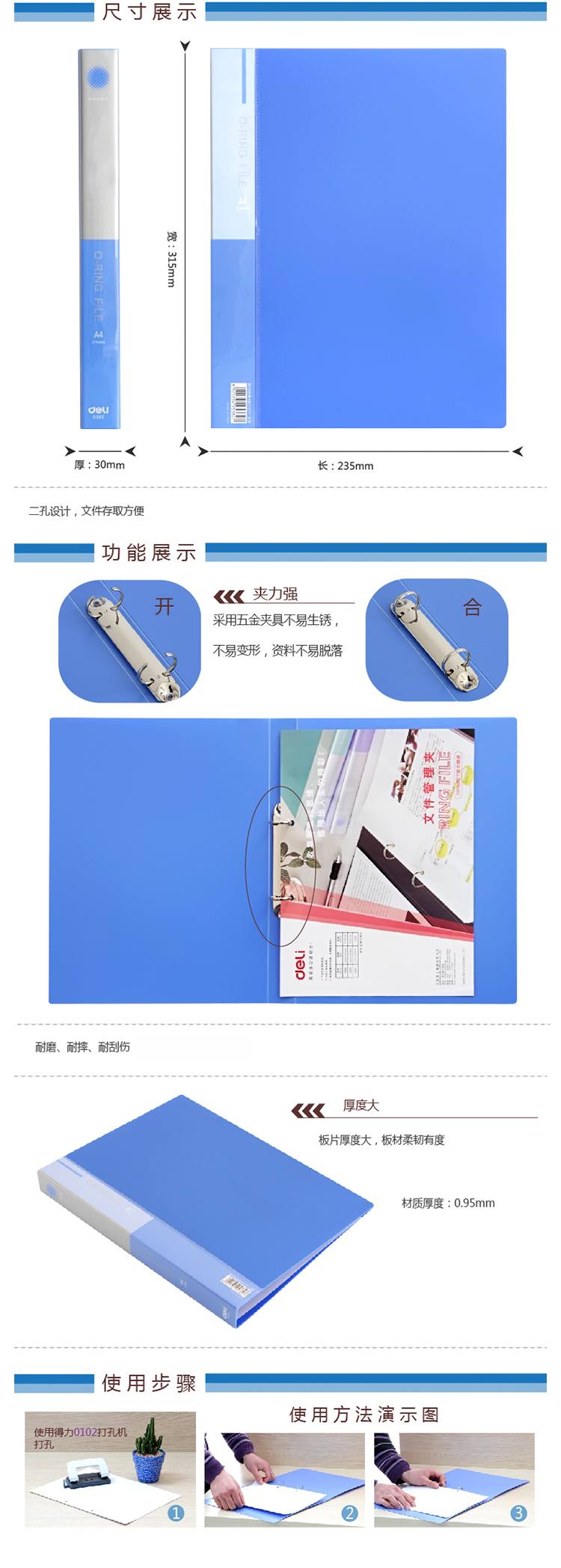 商品名称:得力(deli)5382 A4二孔O型文件夹 蓝 单只
