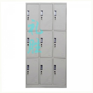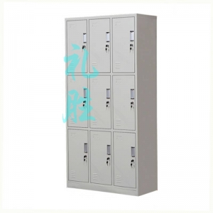 九门更衣柜、规格:1850*900*420、板材厚度0.8mm、钢材选用优质宝钢spcc国标冷轧钢板、热固性亚光粉末静电喷涂,环保无味,铝合金拉手、国标锁具。