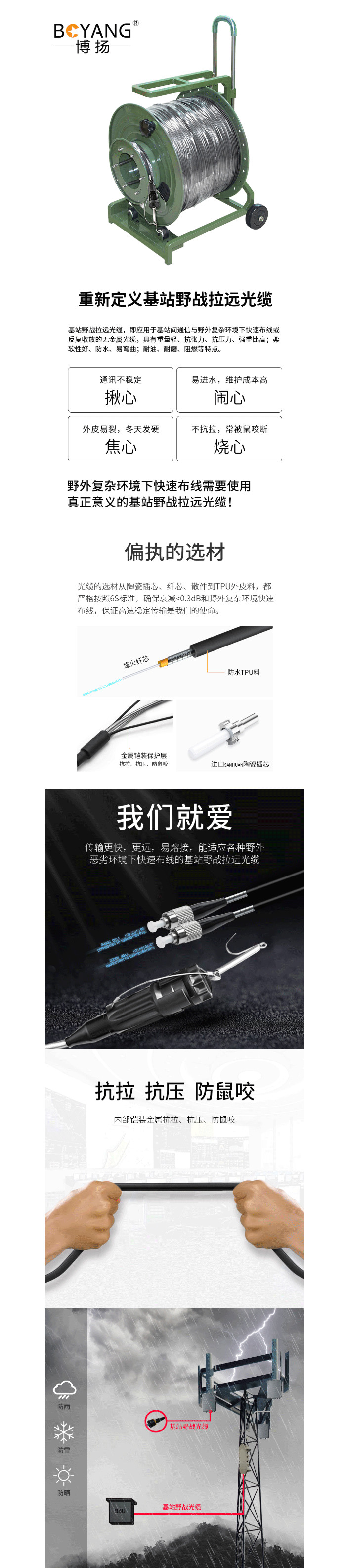 商品名称:博扬(BOYANG)单模双芯室外TPU光缆铠装防水基站抢修2000米放缆车车壁式航空头-FC头BY-2S-YF2000M