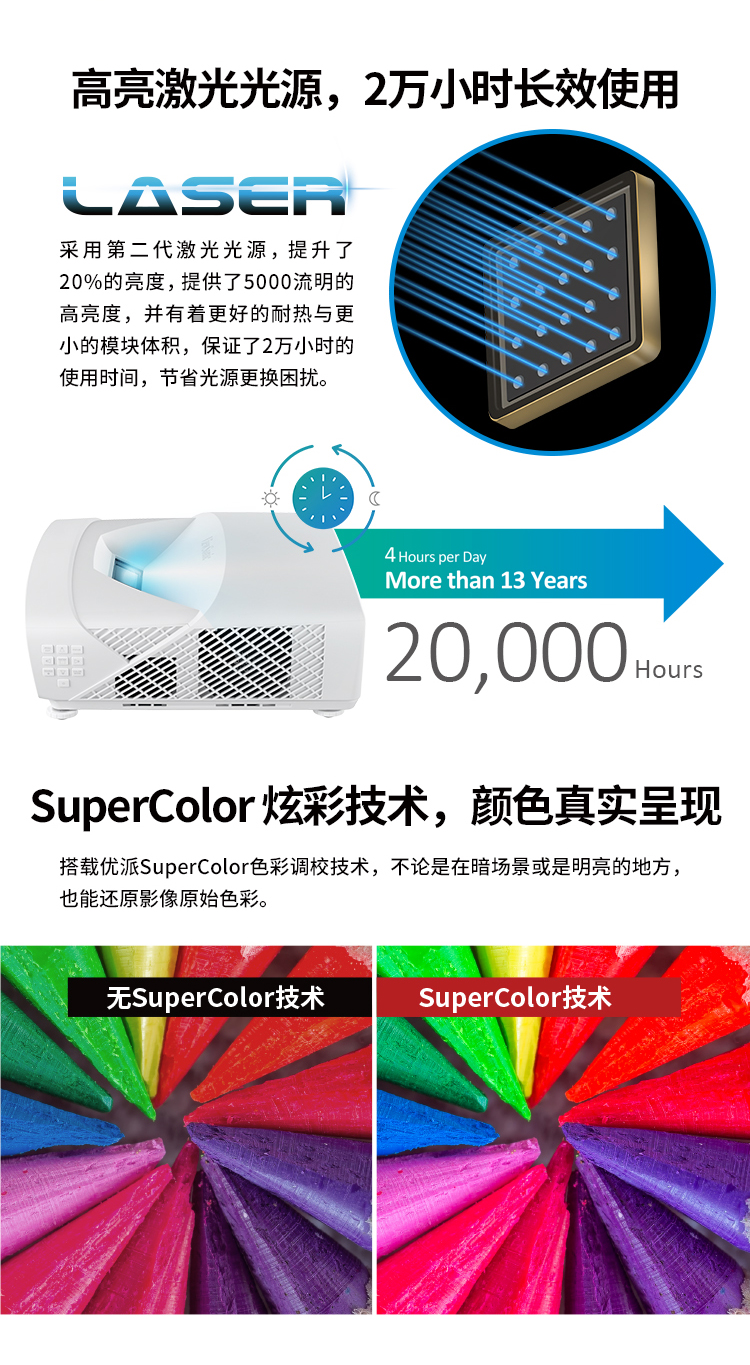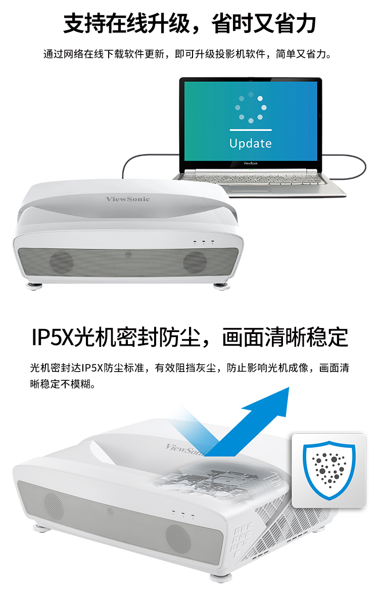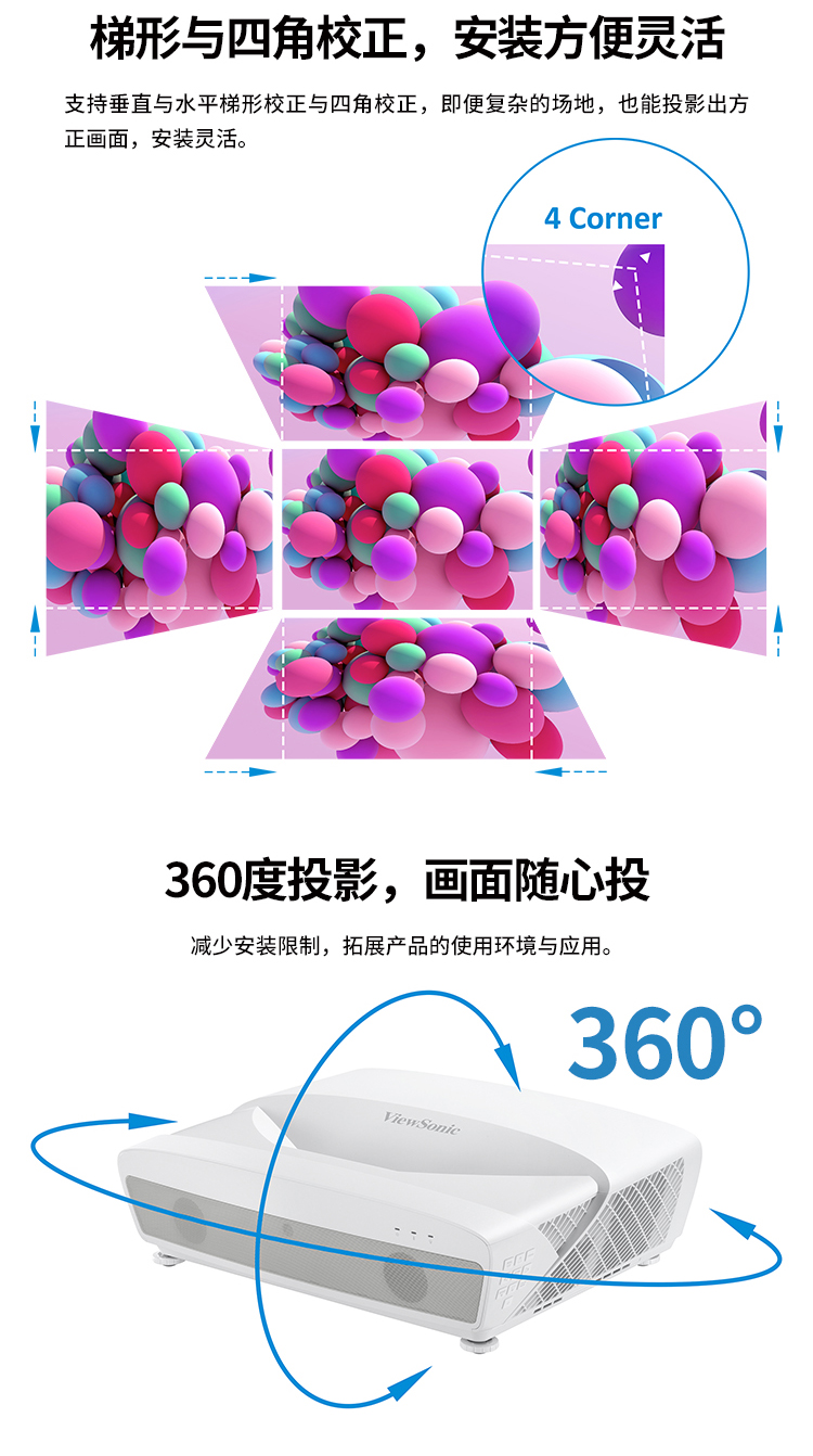 优派 LS831WU+投影仪 办公 激光投影机 教育工程(超短焦 电动对焦 四向矫正)