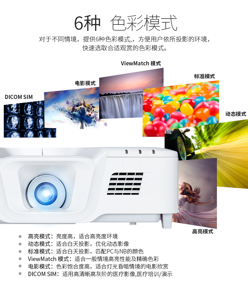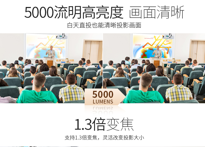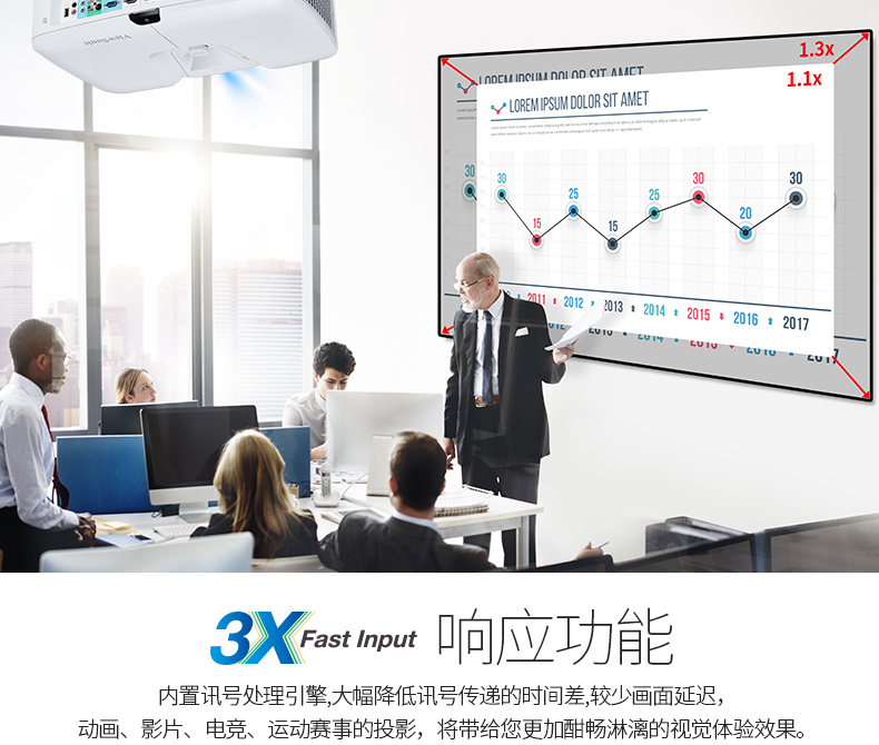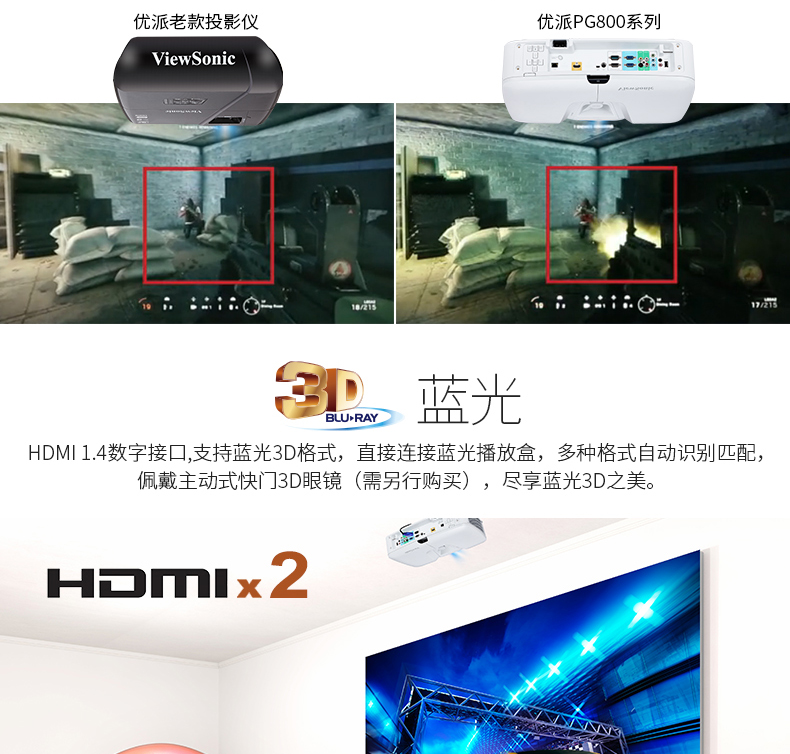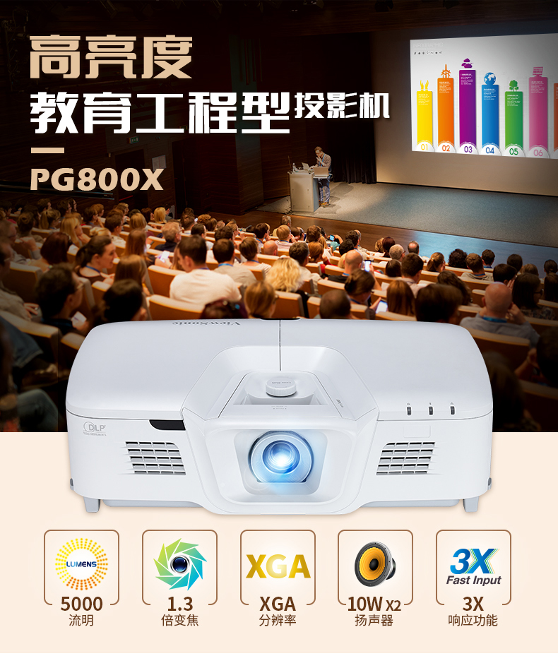 5000流明,1.3x光学变焦,ViewSonic超炫彩、超炫音技术,自动梯形矫正