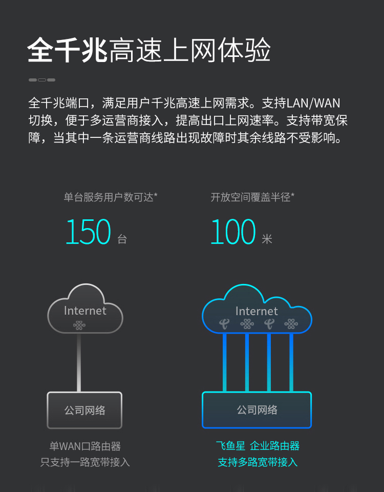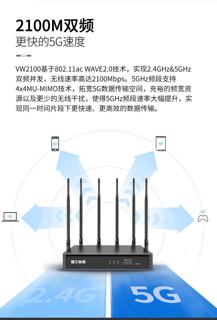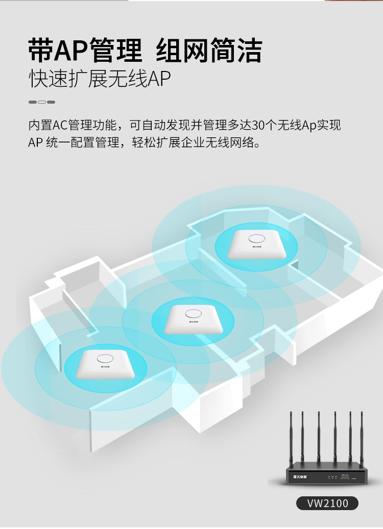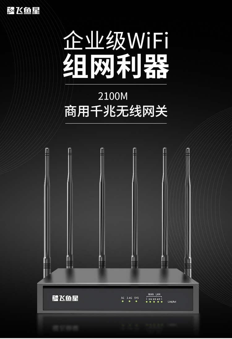 飞鱼星VW2100 5G双频千兆企业路由器 2100M无线商用高速路由 千兆端口/高密wifi/VPN/AC管理