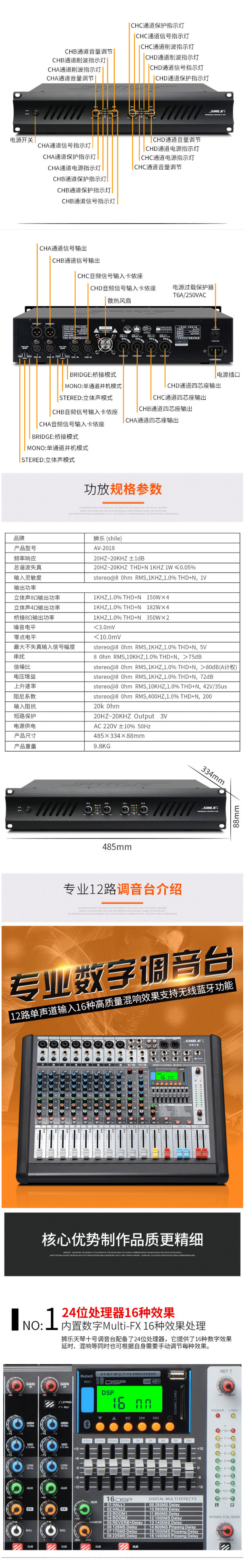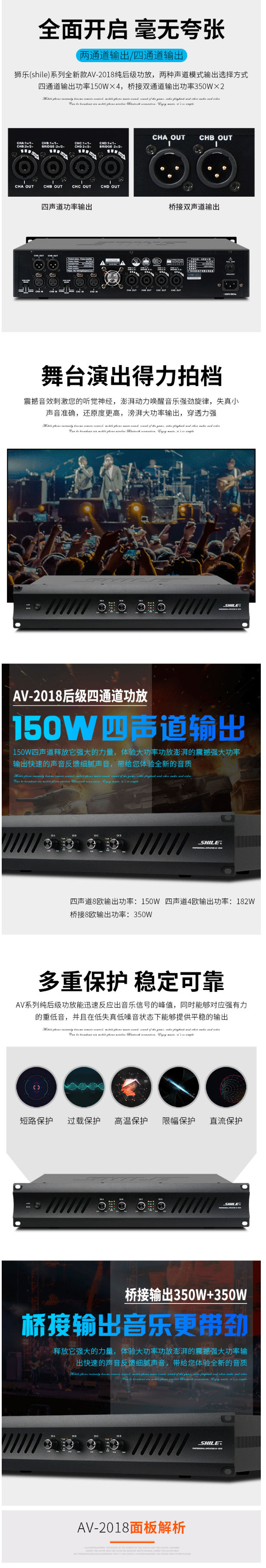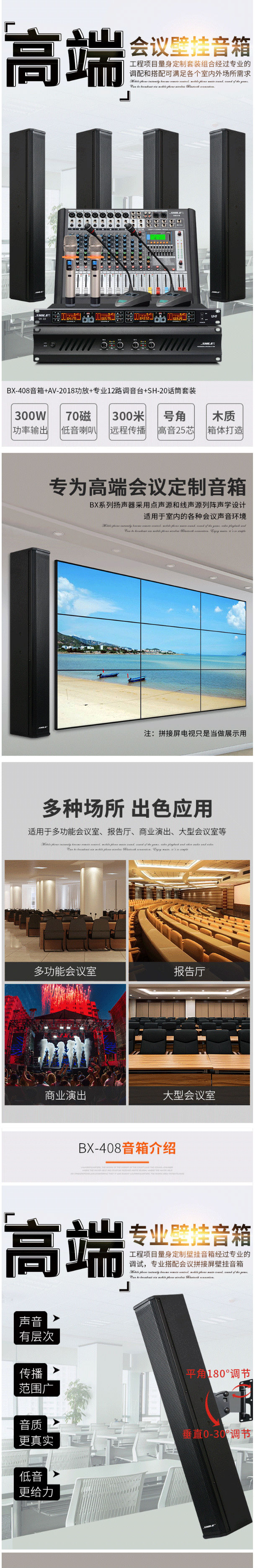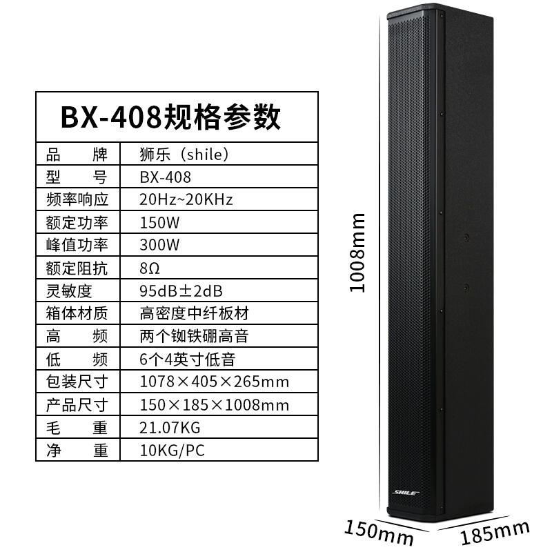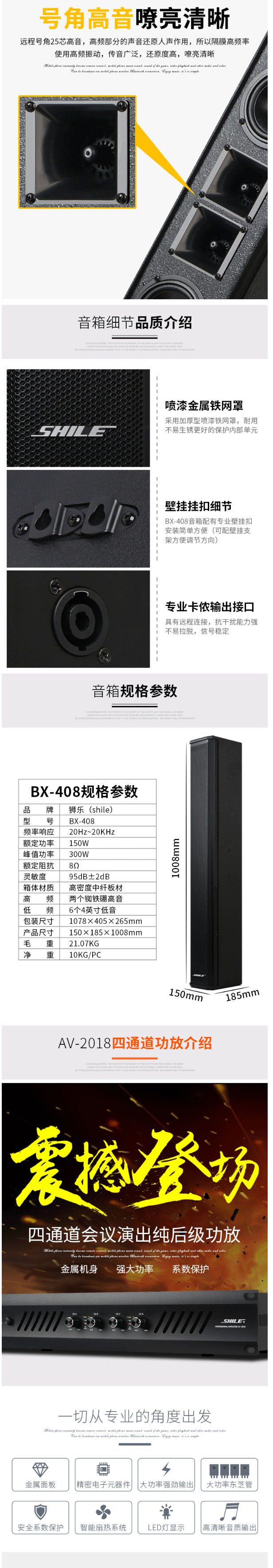 商品名称:狮乐(SHILE)AV2018+BX408+天琴十号+SH10专业大功率会议音响系统后级功放150W壁挂音柱可落地直立