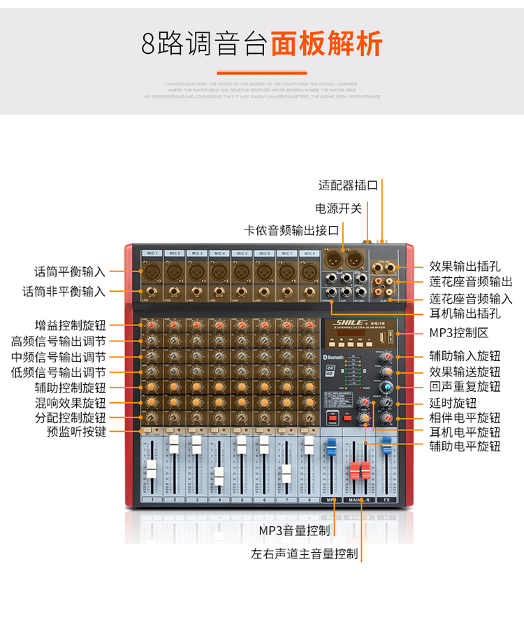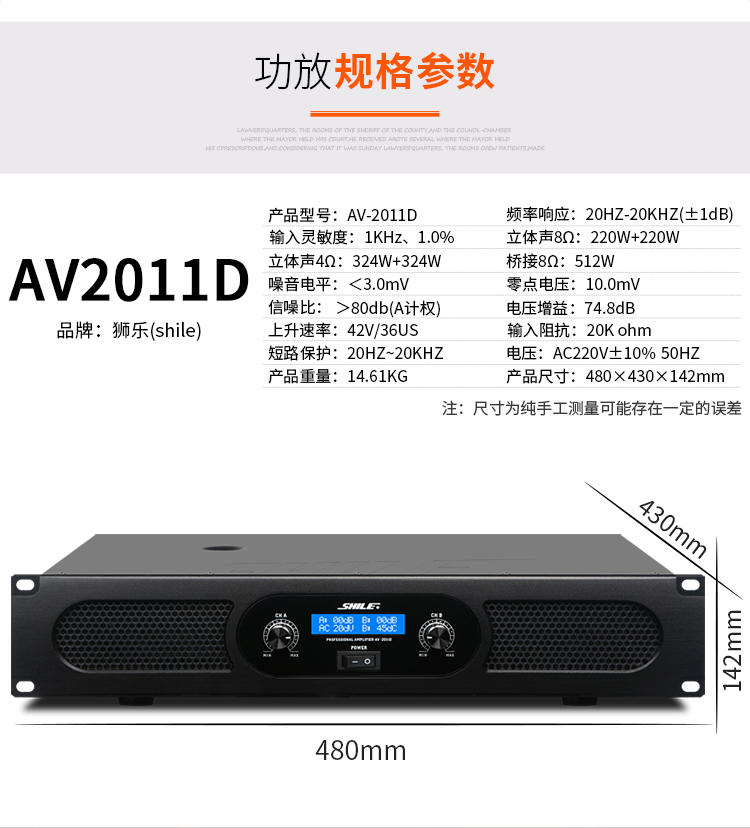 商品名称:狮乐(SHILE)KTV音响企业会议活动唱歌后级大功率带调音台卡拉OK音响系统AV2011D+BX112+天琴八号+SH22