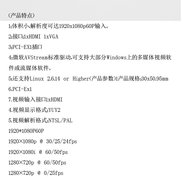 商品名称:天创恒达TC 540N1MC HDV采集卡 笔记本MINI小卡 视频网络直播视频高清采集卡