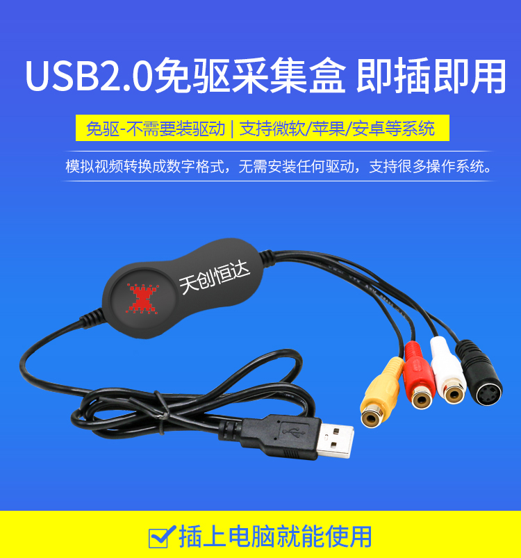 天创恒达 U100pro视频采集卡usb免驱CVBS模拟 视频会议网络直播 电视录制采集盒