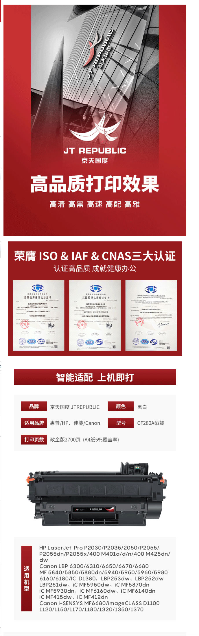 商品名称:适用hp2055d硒鼓 惠普m401硒鼓 80a ce505a HP2035N m401d墨盒 cf280a 05a p2055d HP Laserjet打印机硒鼓