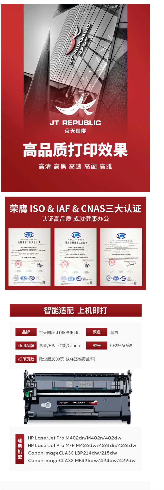 商品名称:适用惠普M426fdn硒鼓 HP26A Pro M402dn m426fdw CF226A MFP M402n M402dw m402dne LBP214dw 215dw 429dw