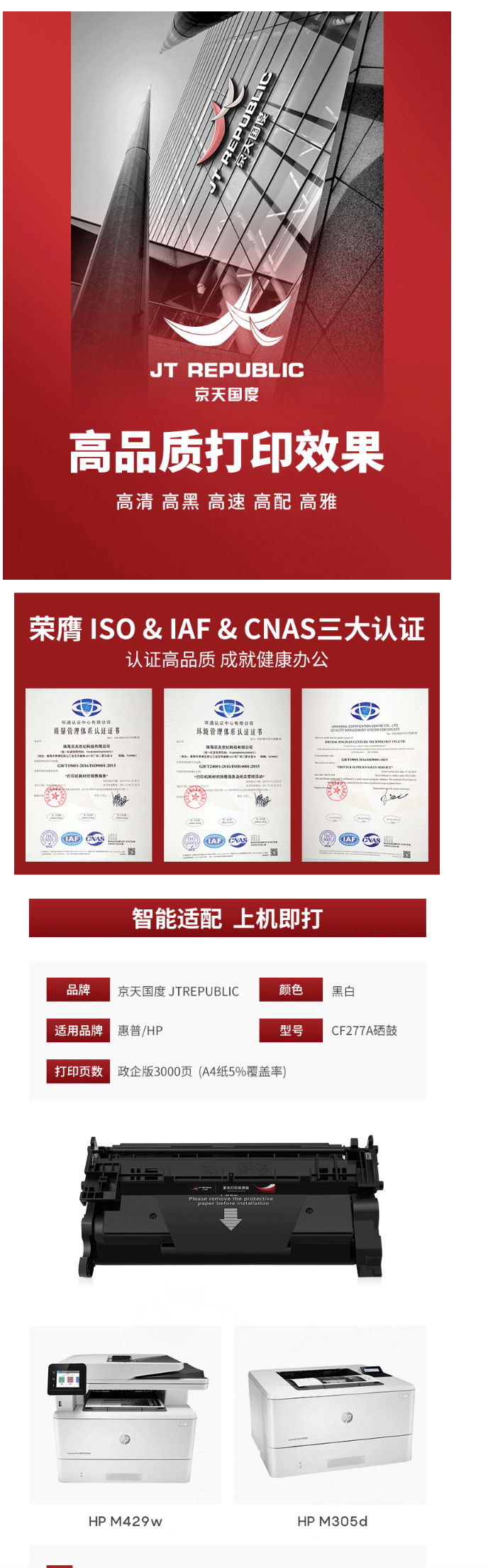 商品名称:适用惠普M429dw硒鼓 M429fdn/fdw硒鼓 激光打印M329dw M305碳粉M405dn/dwHP77a Laserjet Pro MFP粉盒cf277a