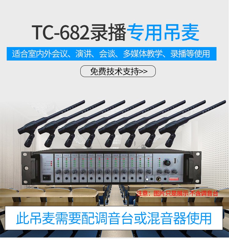 天创恒达TC-682麦克风 录播直播YY主播全民K歌 有线话筒 吊麦 学校录播教室 电容式工程