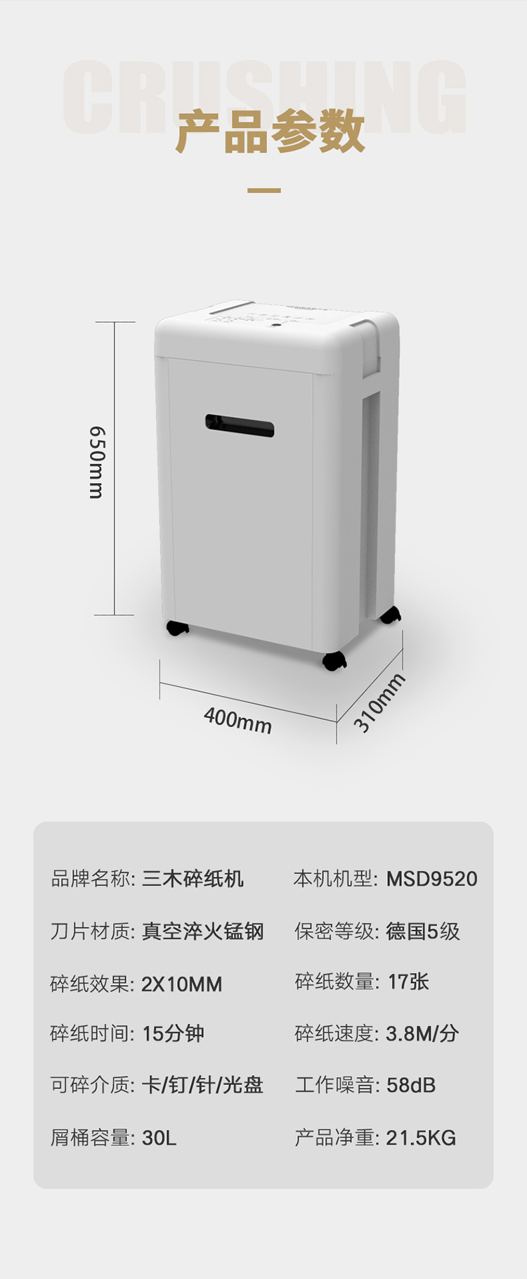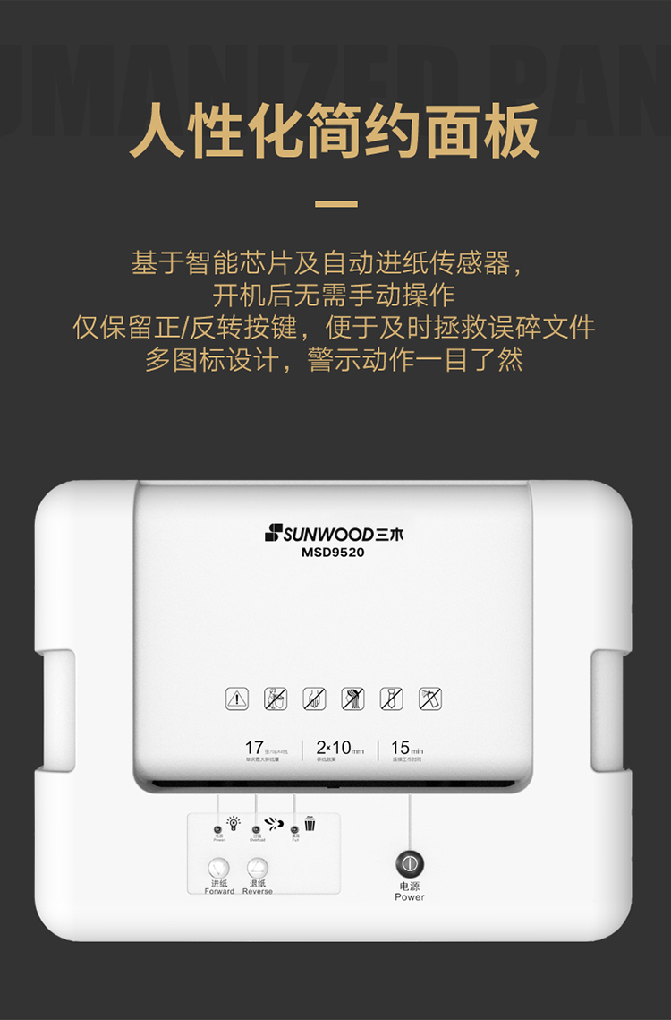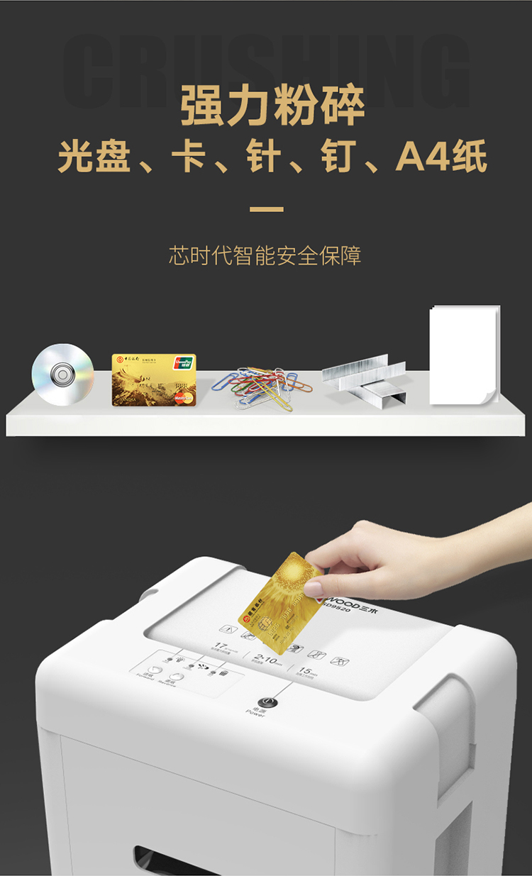 商品名称:三木(SUNWOOD)MSD9520锰钢侠系列碎纸机/文件粉碎机 五级保密