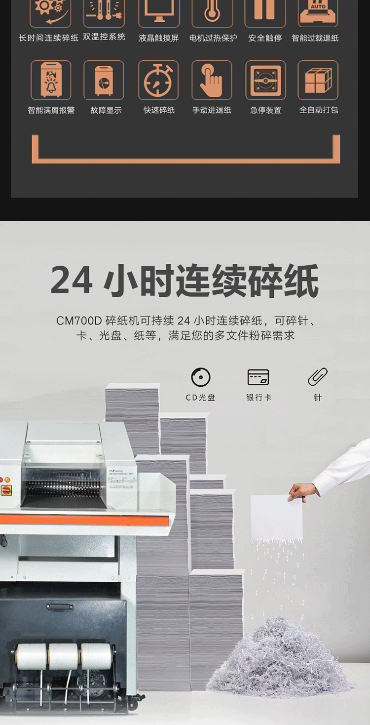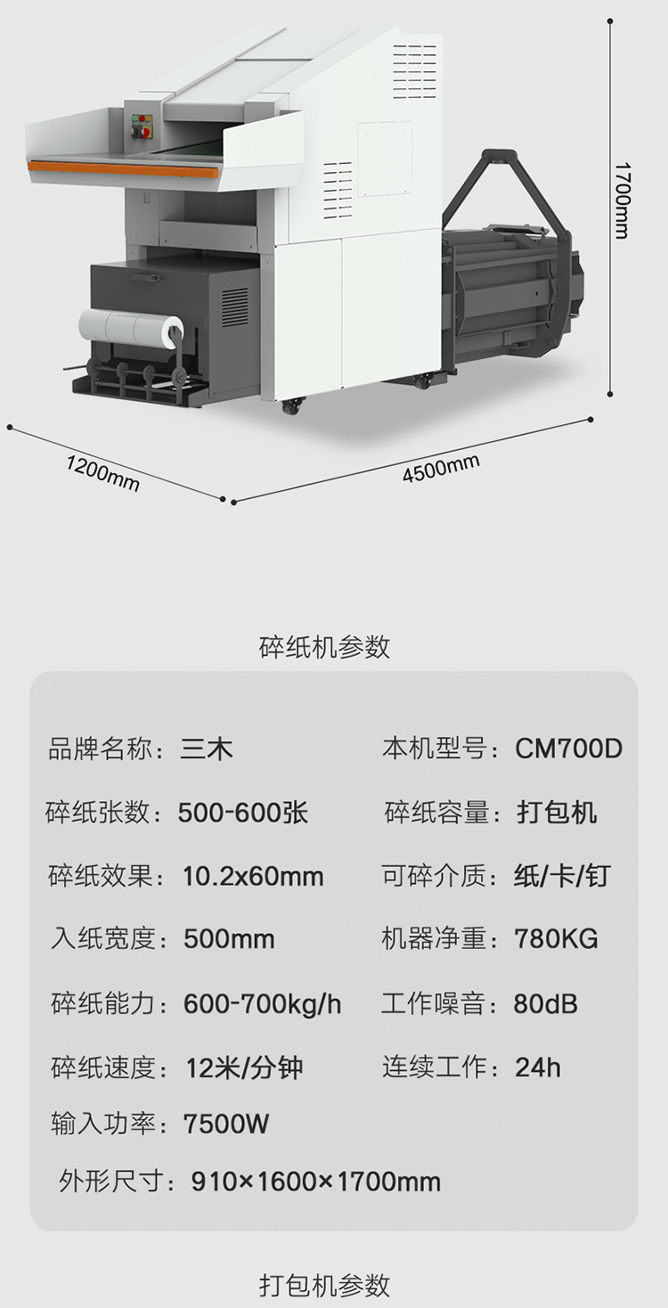 商品名称:三木(SUNWOOD)CM700D工业级全自动碎纸/打包一体机