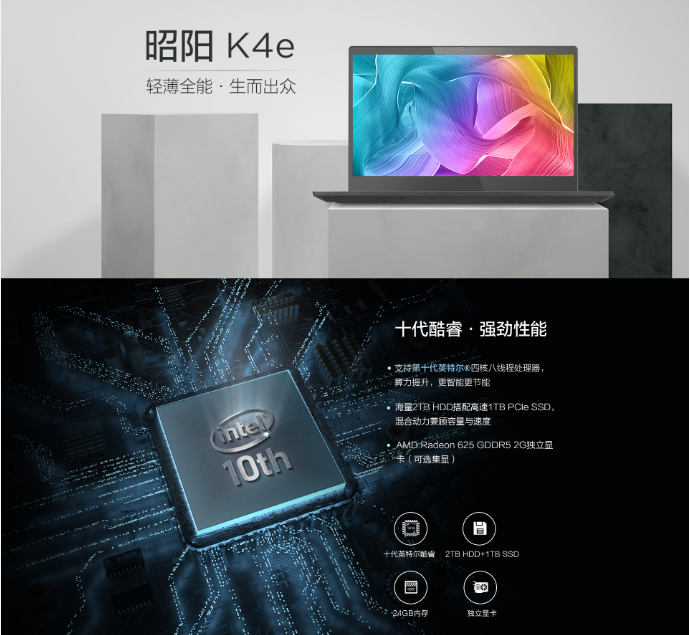 联想昭阳K4e-IML224 (14寸 i3-10110U /8G内存/1T/集成显卡/DOS/无光驱/14.0 FHD IPS /指纹识别/1.5Kg/原装包鼠/原厂三年质保)