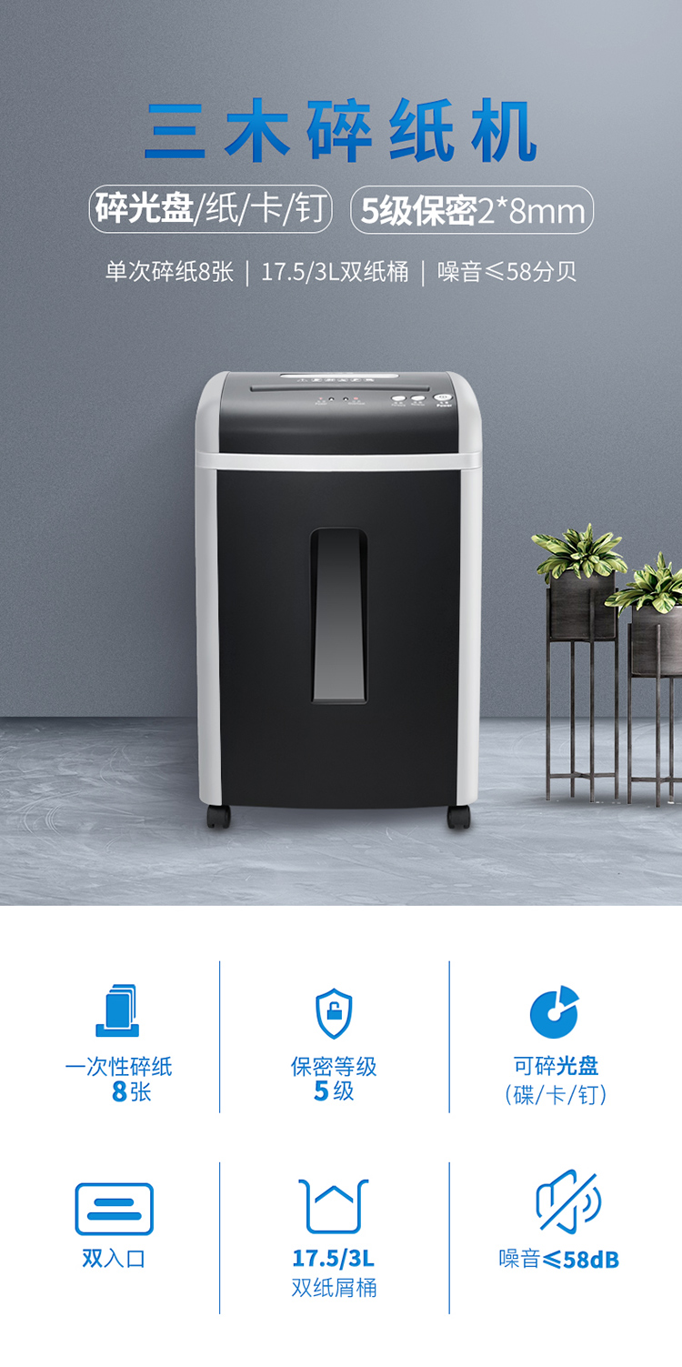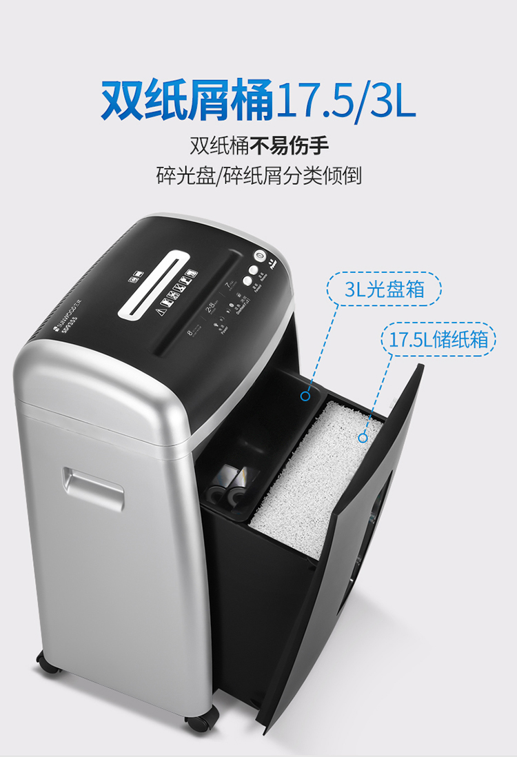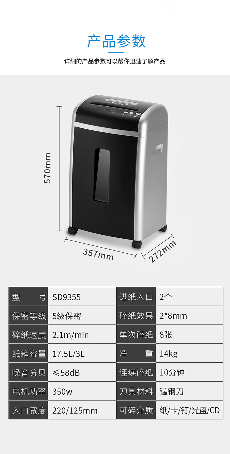 商品名称:三木(SUNWOOD)SD9355德国5级保密碎纸机/文件粉碎机高效静音 可碎钉/卡/光盘