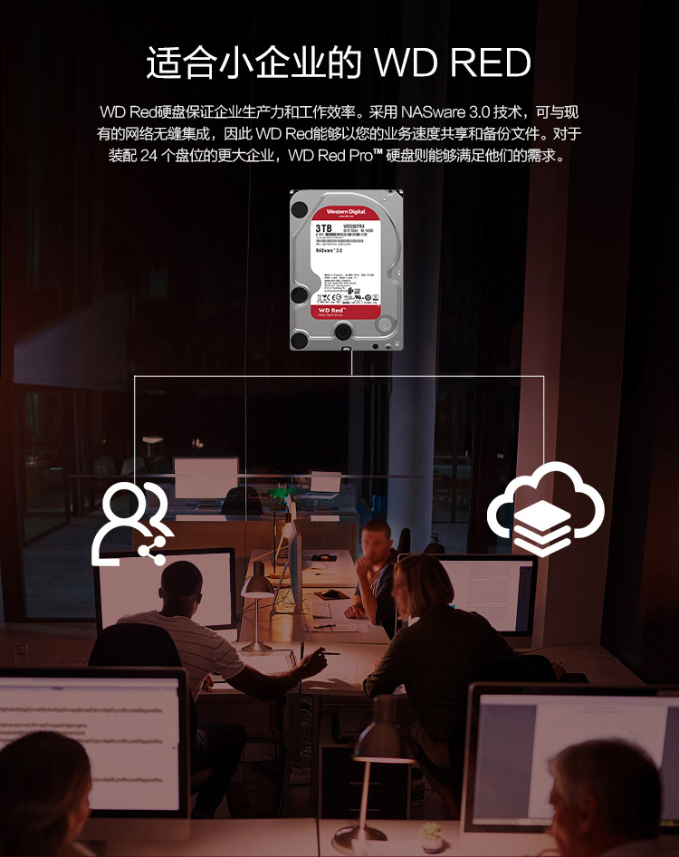 西部数据(WD)红盘 3TB SATA6Gb/s 64M 网络储存(NAS)硬盘(WD30EFRX)