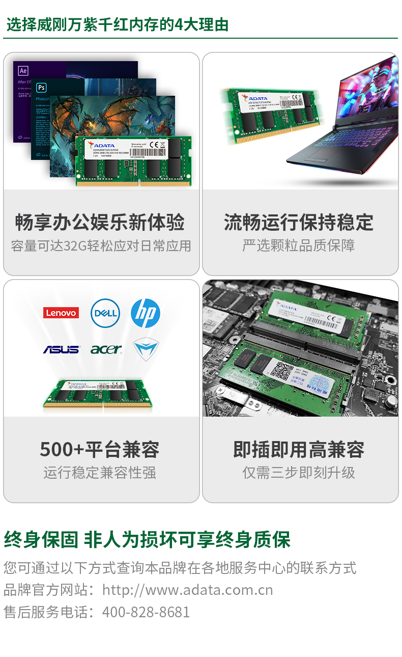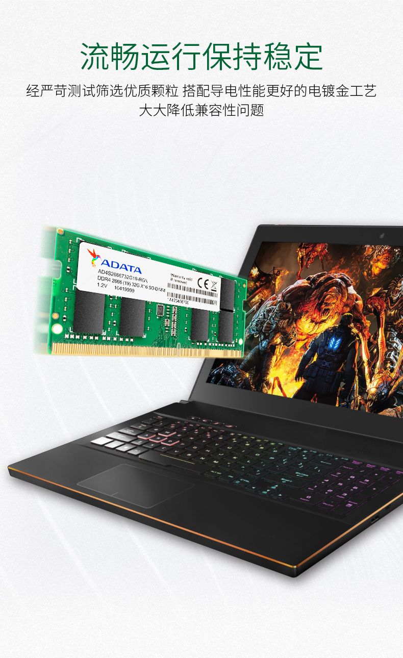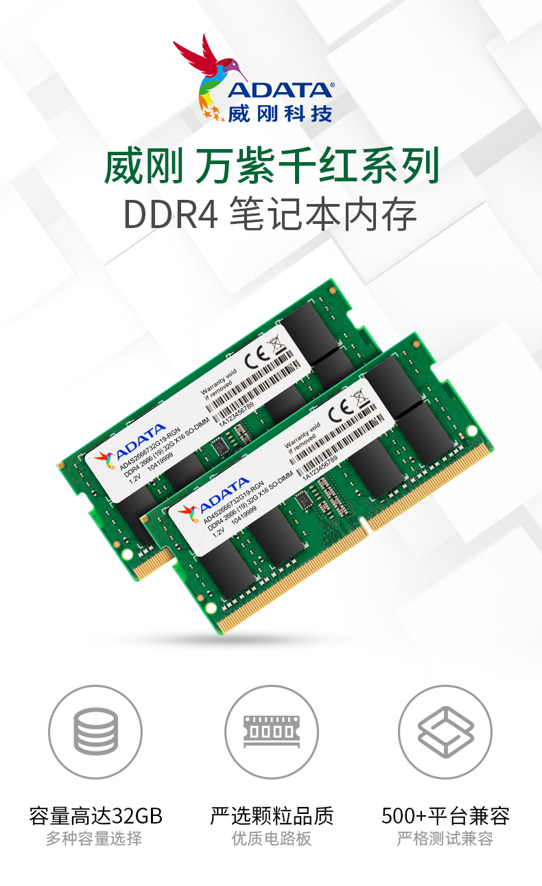 商品名称:威刚(ADATA)DDR4 2666 32GB 笔记本内存条 万紫千红