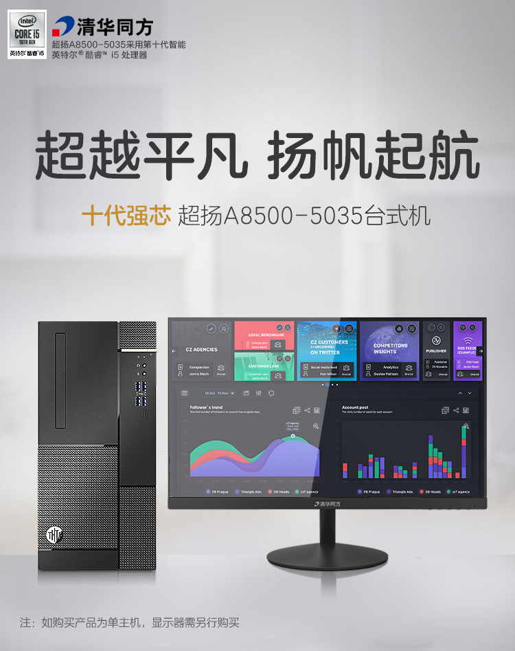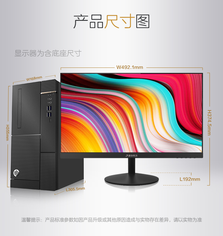 清华同方(THTF)超扬A8500商用办公台式电脑整机(十代i5-10400 8G 1T 五年上门 内置WIFI )21.5英寸