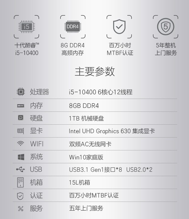 商品名称:清华同方(THTF)超扬A8500商用办公台式电脑整机(十代i5-10400 8G 1T 五年上门 内置WIFI )21.5英寸