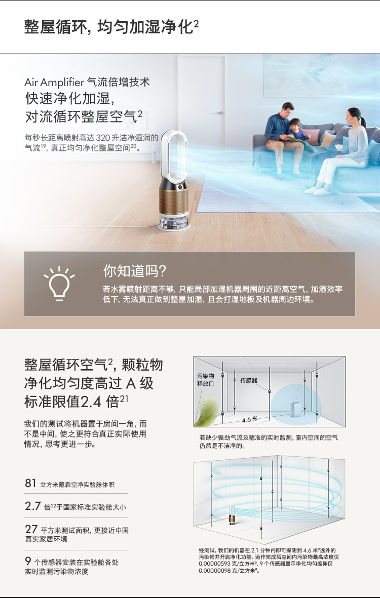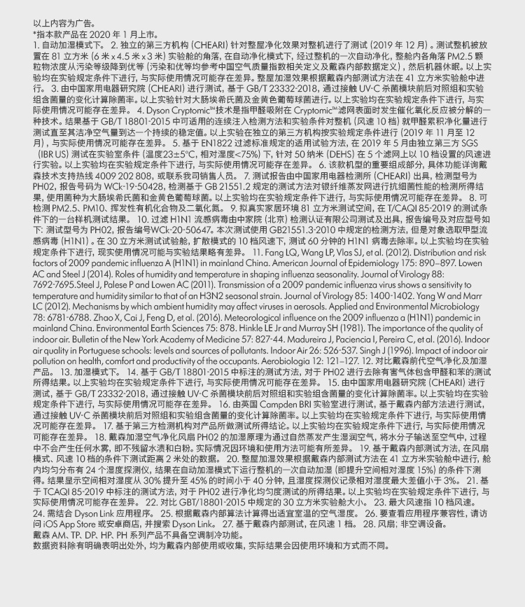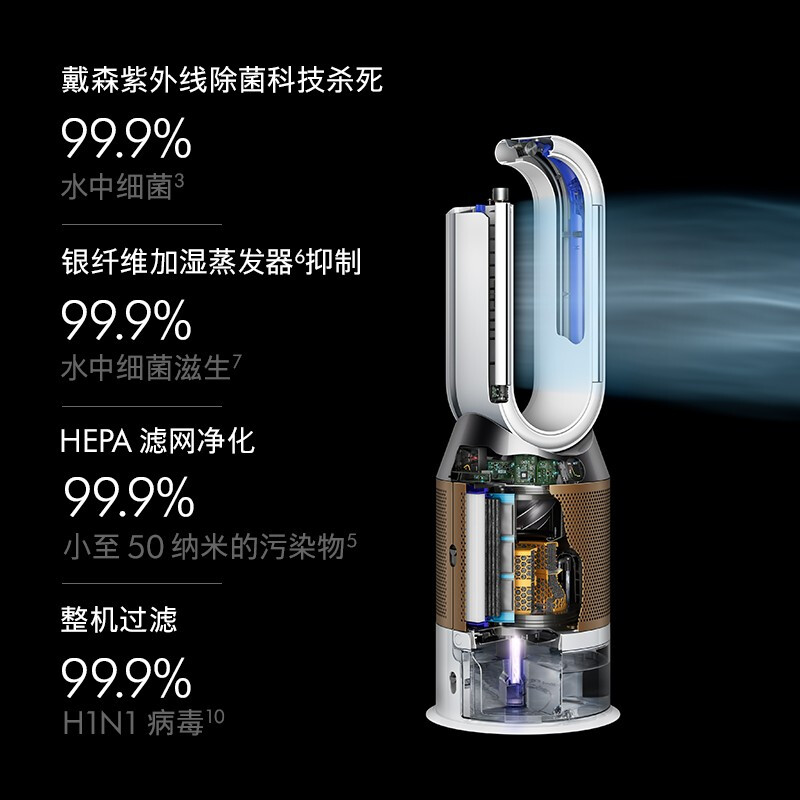 戴森(Dyson)PH02 多功能空气净化加湿器 兼具净化器及加湿功能 无雾加湿 除菌除甲醛 黑金色