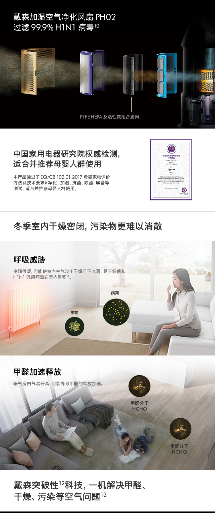 过滤污染物类型:甲醛;PM2.5;过敏源;细菌