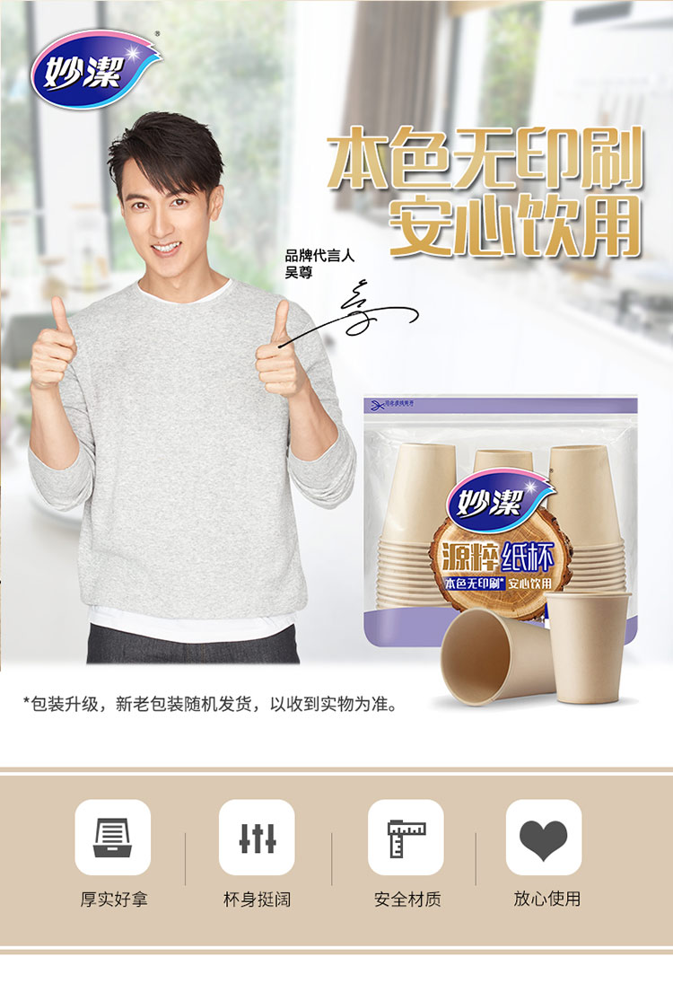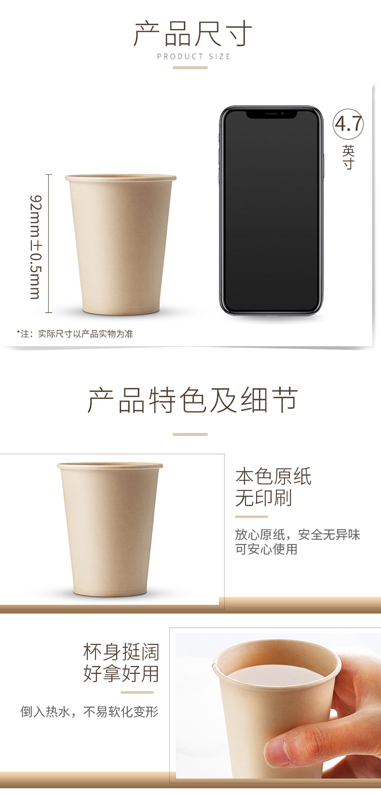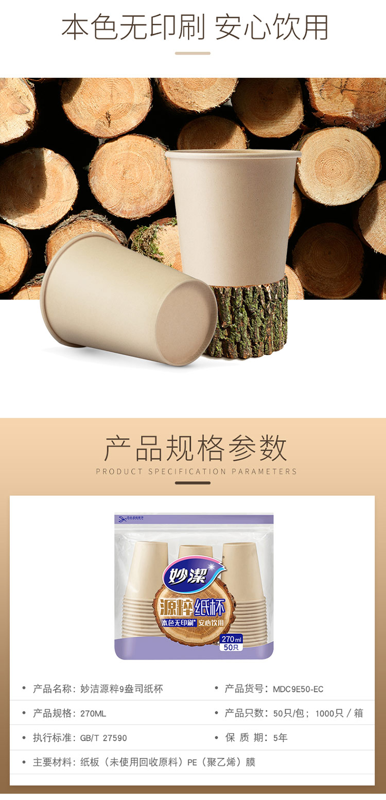 商品名称:妙洁源粹纸杯270ml*50只 加厚挺阔不易倒一次性杯子本色无印刷厨房安心饮水
