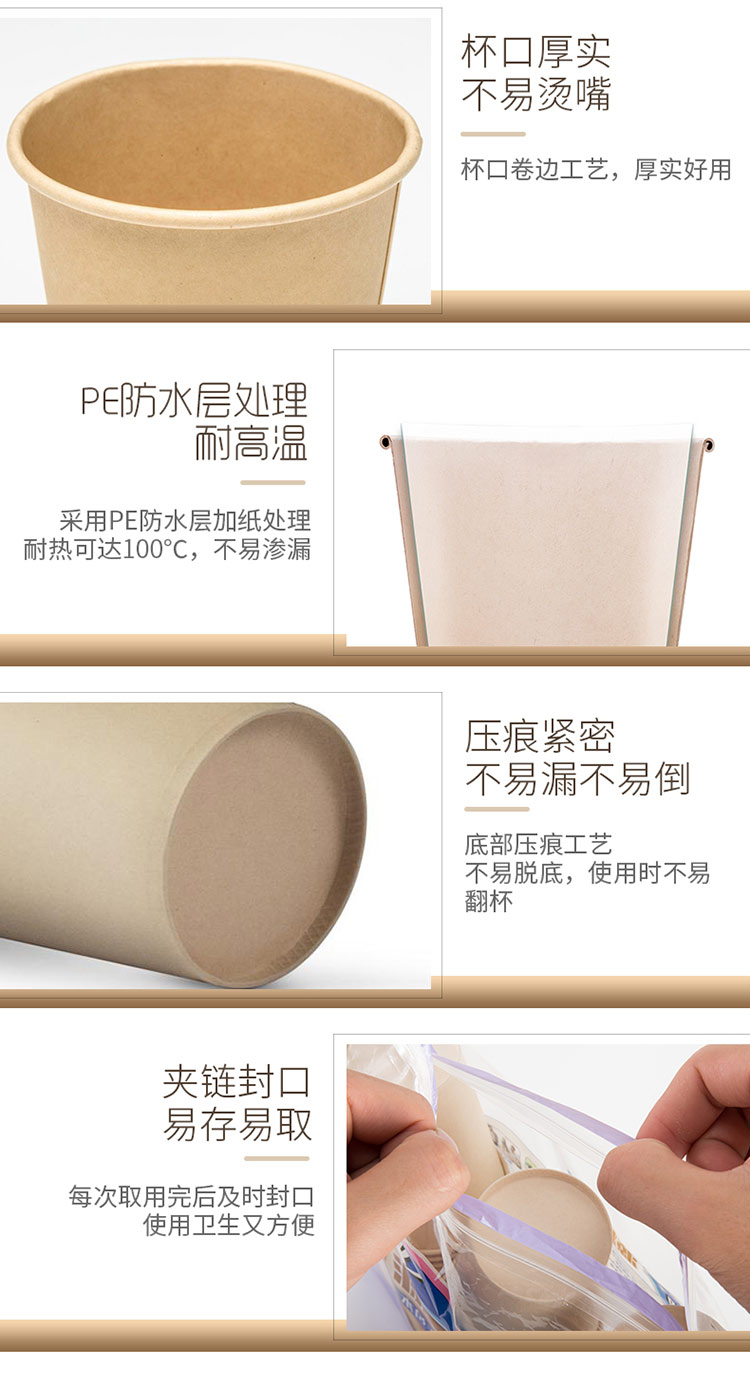 妙洁源粹纸杯270ml*50只 加厚挺阔不易倒一次性杯子本色无印刷厨房安心饮水