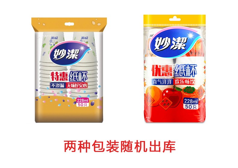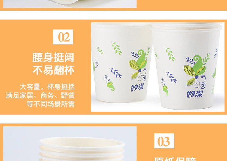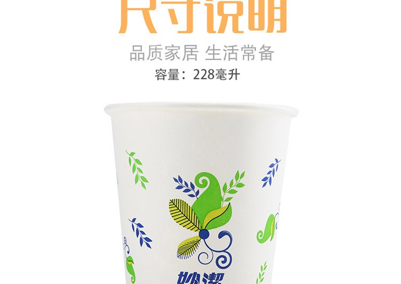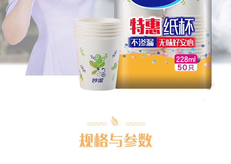 商品名称:妙洁(MIAOJIE) 商用办公用家用一次性纸杯特惠装50只装228ML 食品级环保纸杯饮水杯子