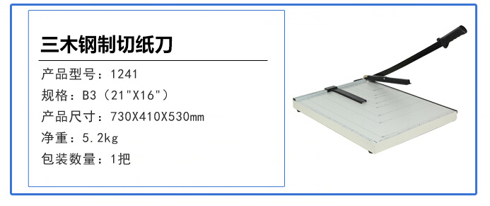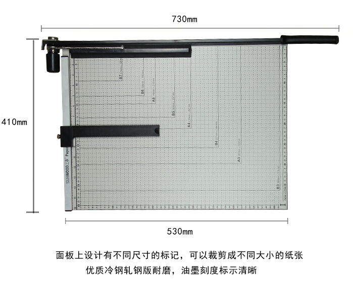 商品名称:三木(SUNWOOD) 530mm*410mm B3钢质切纸机/切纸刀/裁纸刀 1241