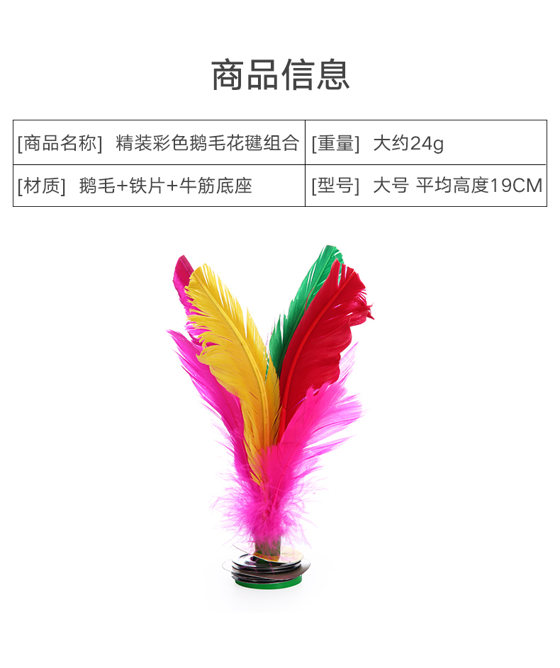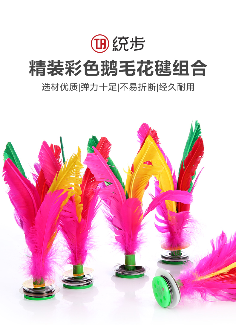 商品名称:统步 毽子大号鹅毛彩色比赛专用毽球牛筋底花毽成人儿童毽子耐用型5个装