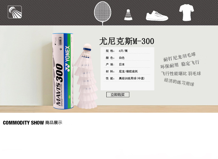 商品名称:尤尼克斯YONEX羽毛球M-300耐打尼龙塑料球白色