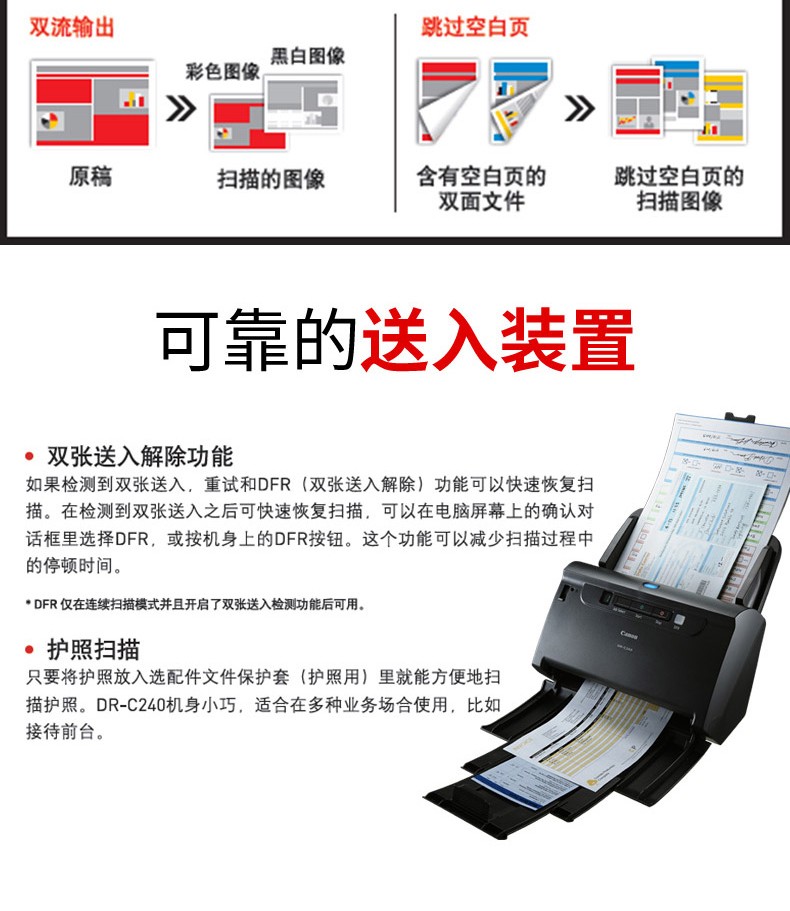 商品名称:佳能扫描仪LiDE400/300/c225照片高速文档双面扫描仪家用身份证扫描仪 双面馈纸式DR-M140