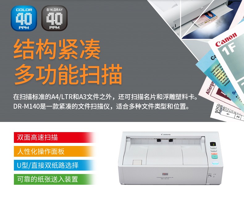佳能扫描仪LiDE400/300/c225照片高速文档双面扫描仪家用身份证扫描仪 双面馈纸式DR-M140