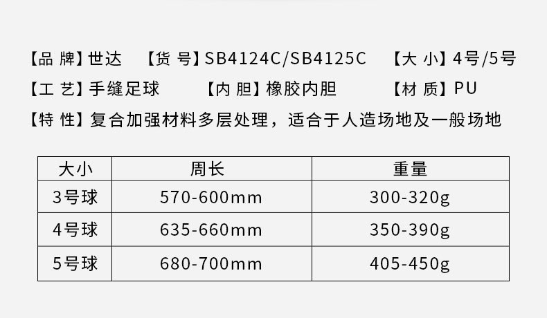 世达(star)SB4125C 足球成人耐磨5号足球2020年新款手缝比赛足球