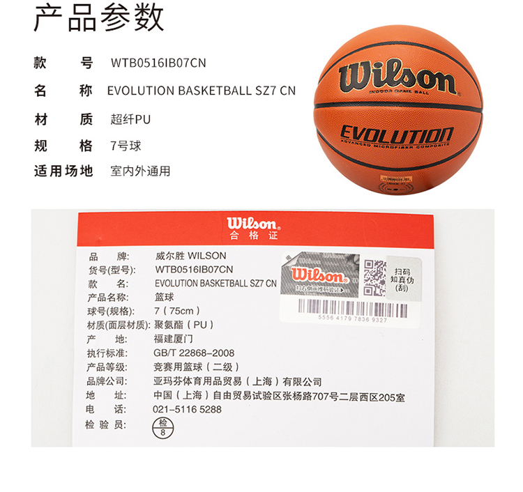 商品名称:威尔胜 Wilson 2020款Evolution全美高中比赛用球7号篮球 WTB0516IB07CN