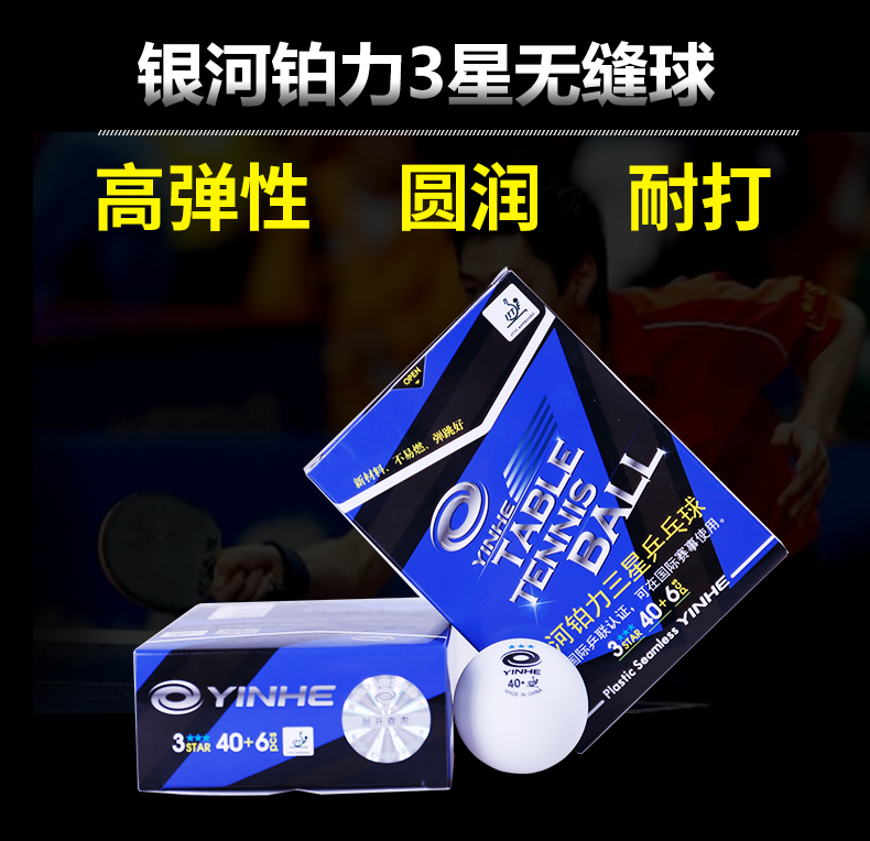 银河3星乒乓球新材料40+无缝球铂力蓝三星 白色/6只