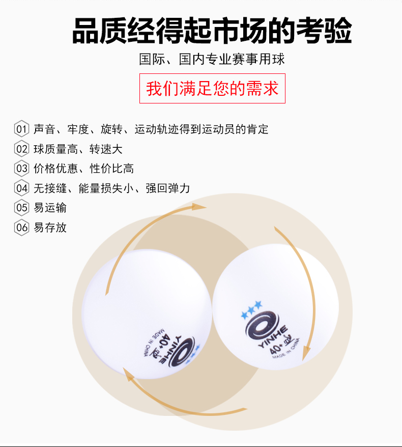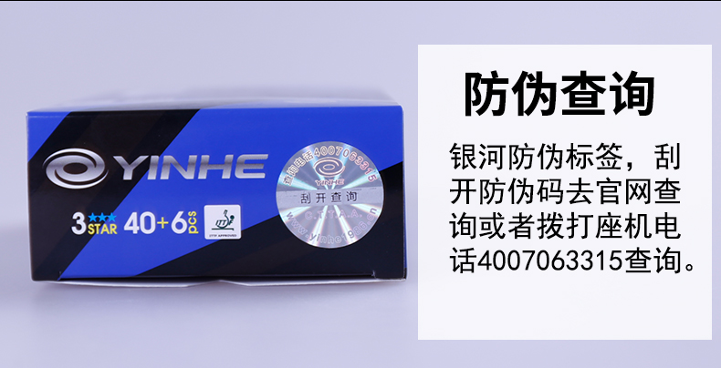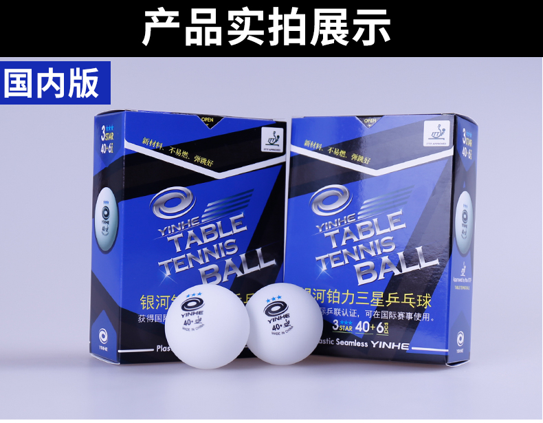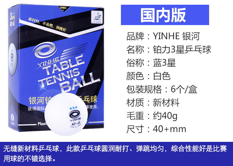 商品名称:银河3星乒乓球新材料40+无缝球铂力蓝三星 白色/6只