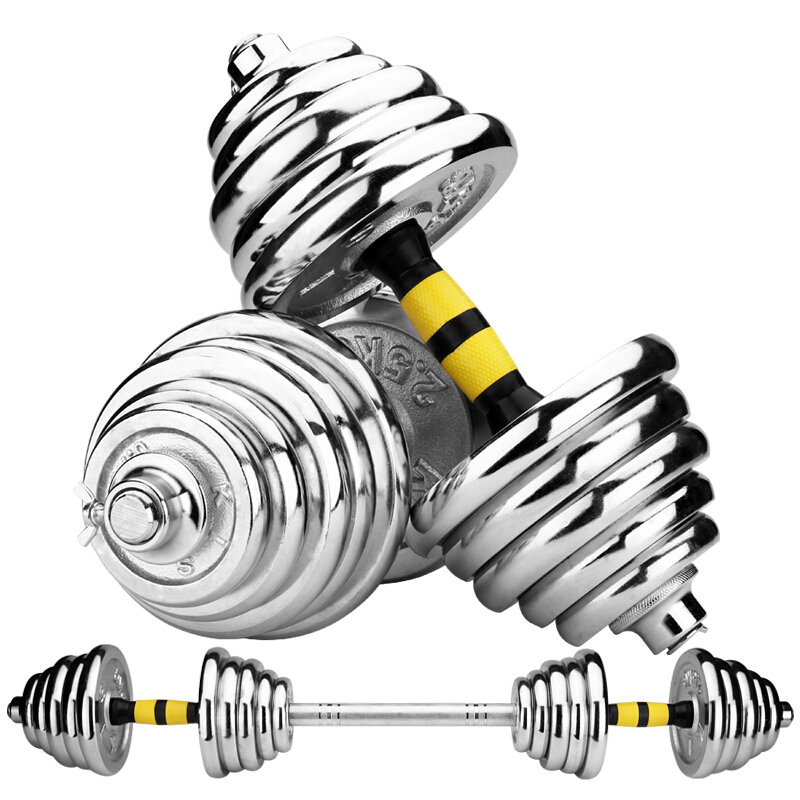 华亚(HUAYA) 电镀哑铃男士杠铃套装组合家用运动健身器材 50kg一副(左右手各25公斤)+30公分连接杆