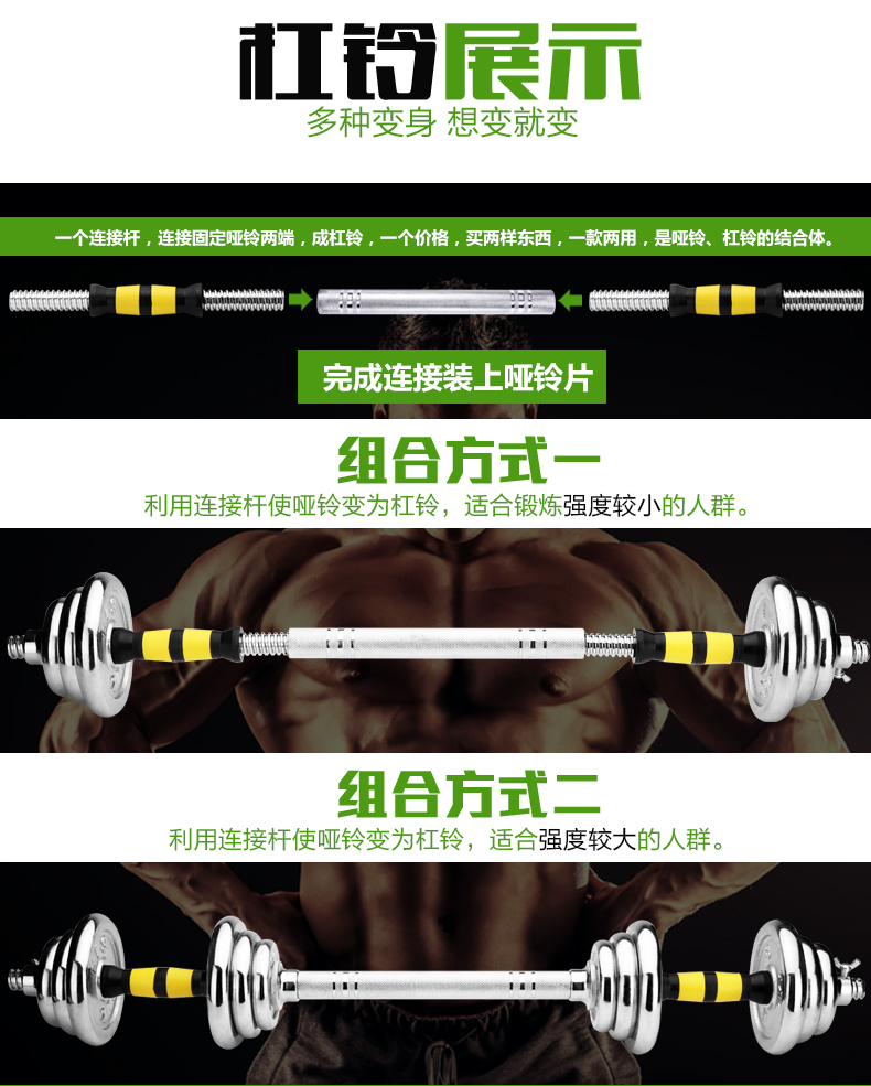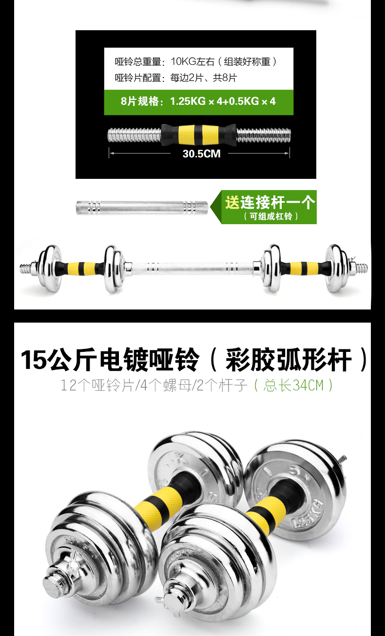 商品名称:华亚(HUAYA) 电镀哑铃男士杠铃套装组合家用运动健身器材 50kg一副(左右手各25公斤)+30公分连接杆