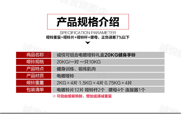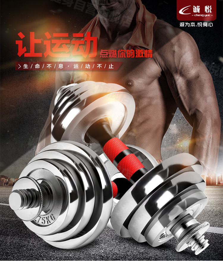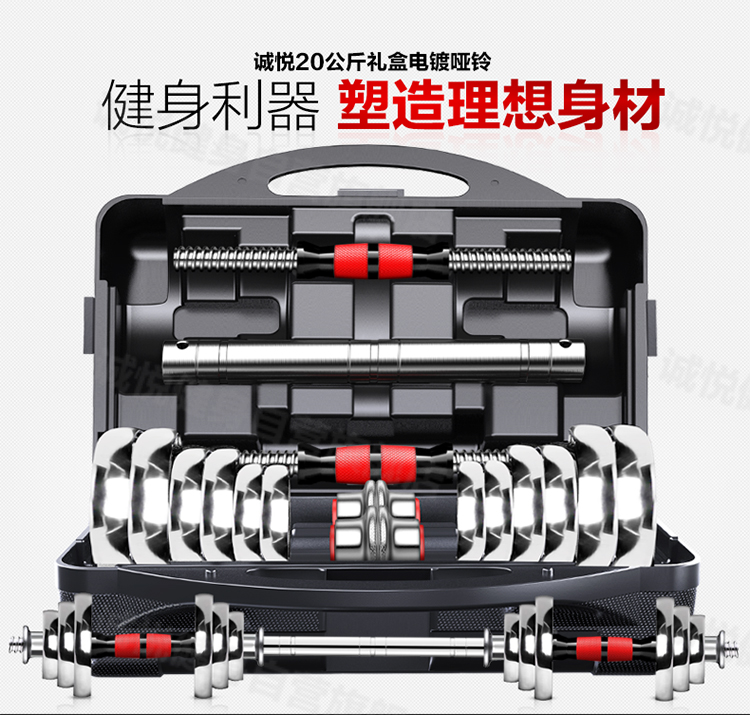 商品名称:诚悦电镀哑铃杠铃20kg(10公斤*2)礼盒男女士运动健身训练器材家用组合升级套装赠护手护腕加长连接器CY-025