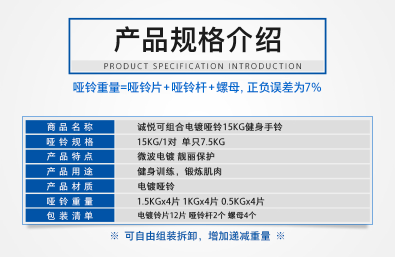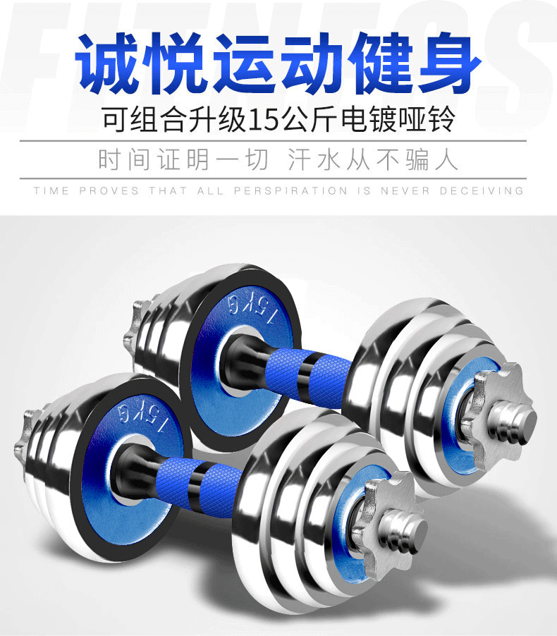 商品名称:诚悦电镀哑铃杠铃15kg(7.5公斤*2)男女士体育运动健身器材家用组合套装CY-066