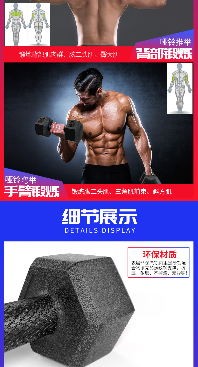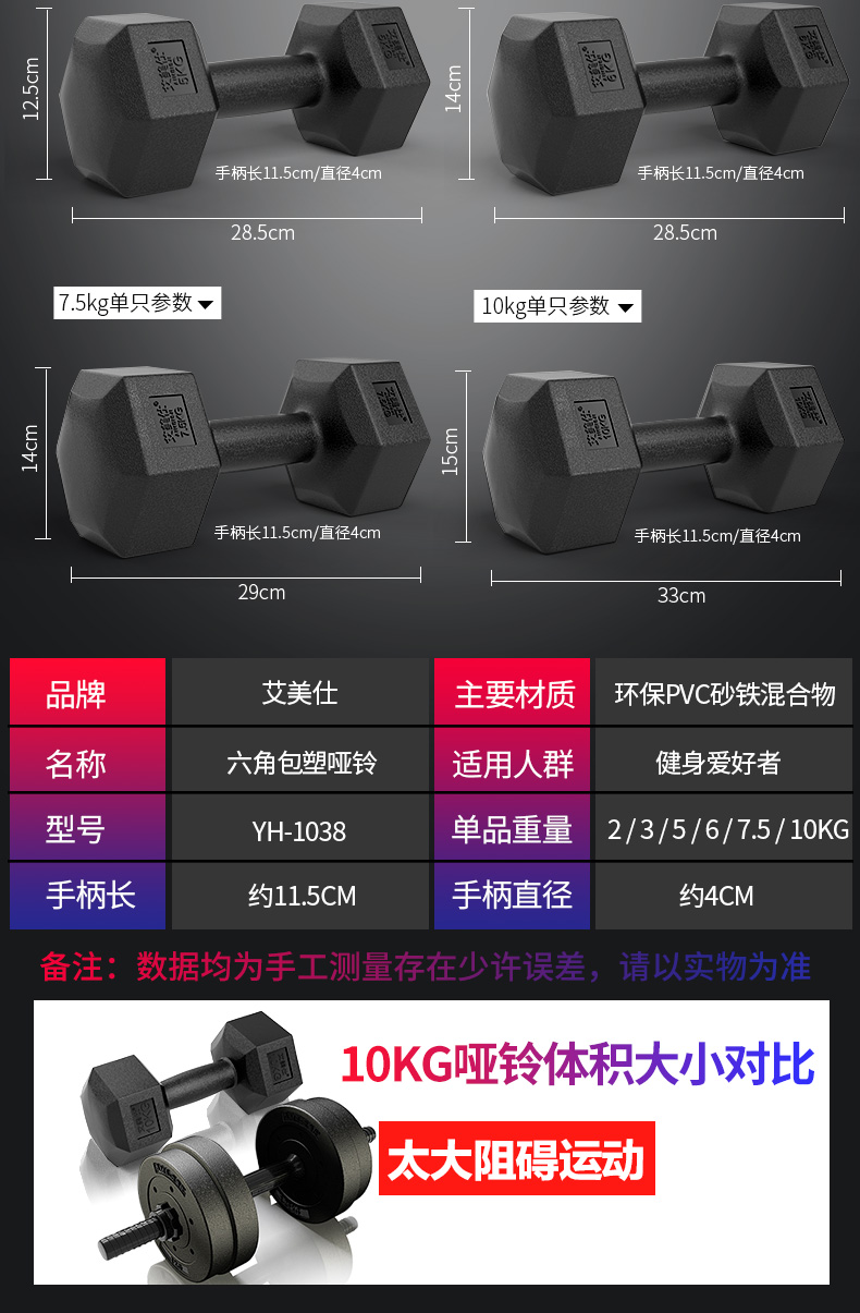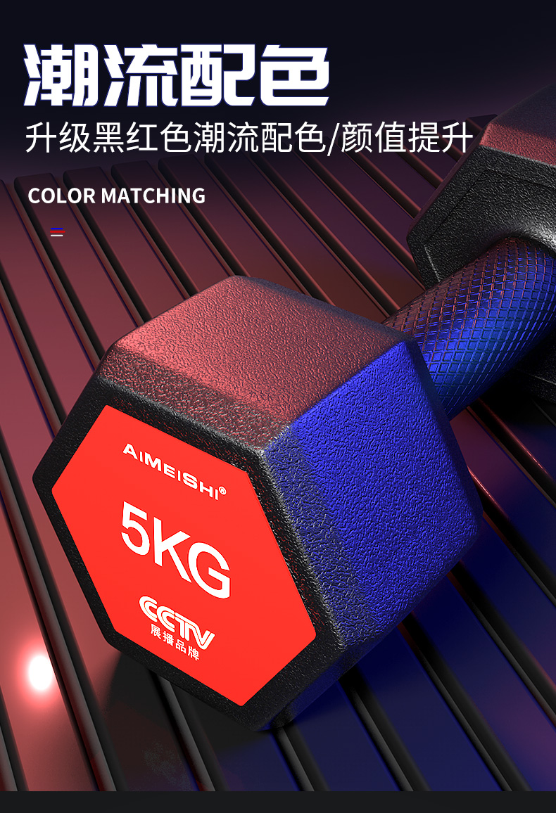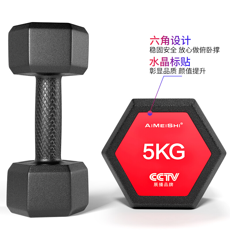 商品名称:艾美仕(AiMeiShi) 艾美仕环保包胶六角哑铃男士5kg家用廋臂健身器材 红标款 10KG一副=5KG*2