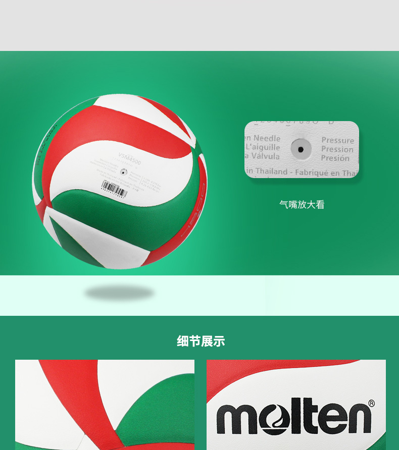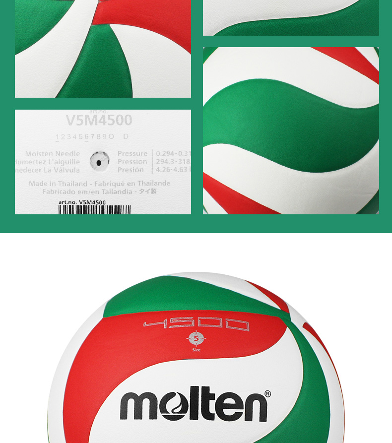 商品名称:molten摩腾排球4500学生中考专用硬排5号PU比赛训练用球