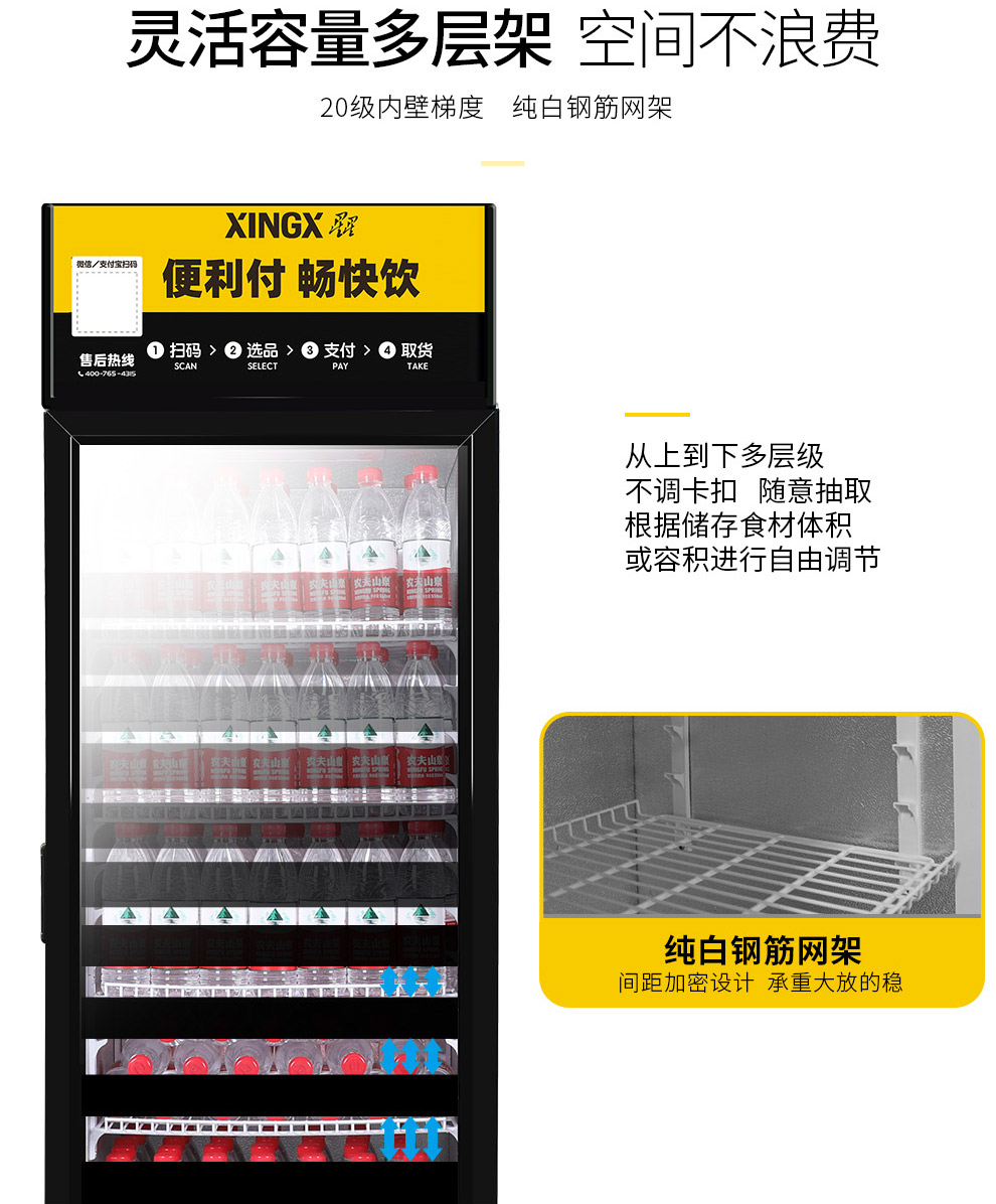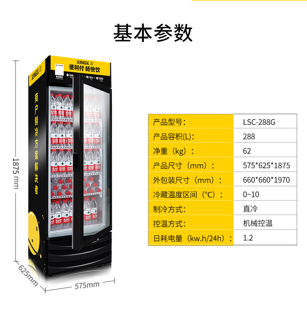 商品名称:星星(XINGX)288升冷藏展示柜 立式商用冰箱保鲜饮料冷柜 单门超市冰柜陈列柜LSC-288G
