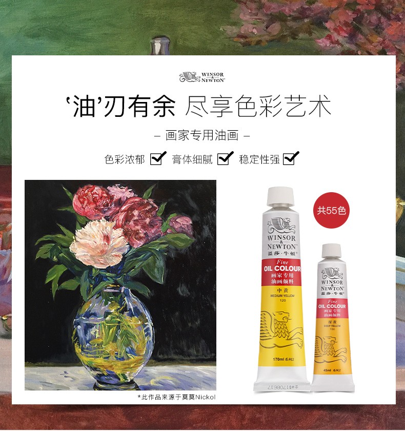 商品名称:温莎牛顿 油画颜料 画家专用油画颜料管支初学者大容量油画油彩颜料套装12/18/24/36色 常用24色 45ml