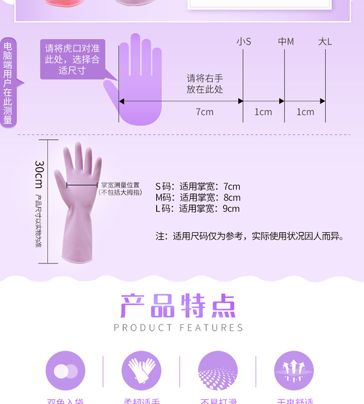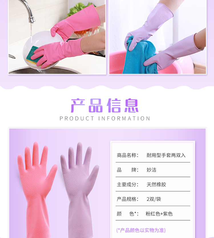 商品名称:妙洁灵巧型手套 清洁橡胶皮耐用家务厨房洗碗衣四季 中号2双装
