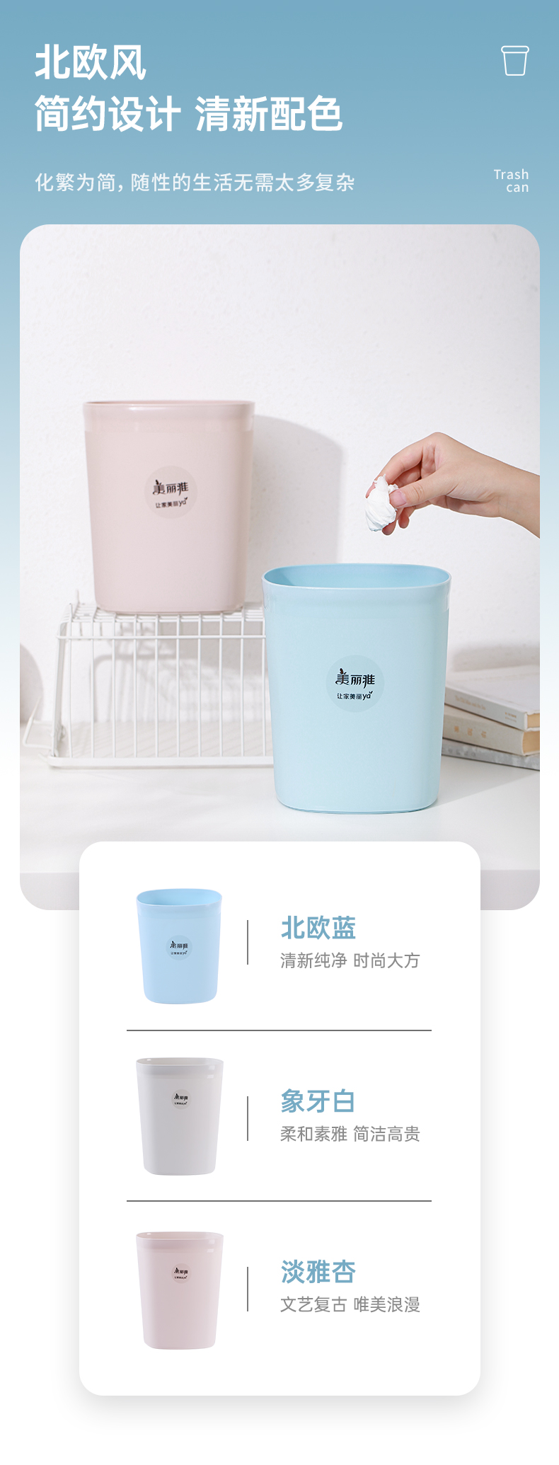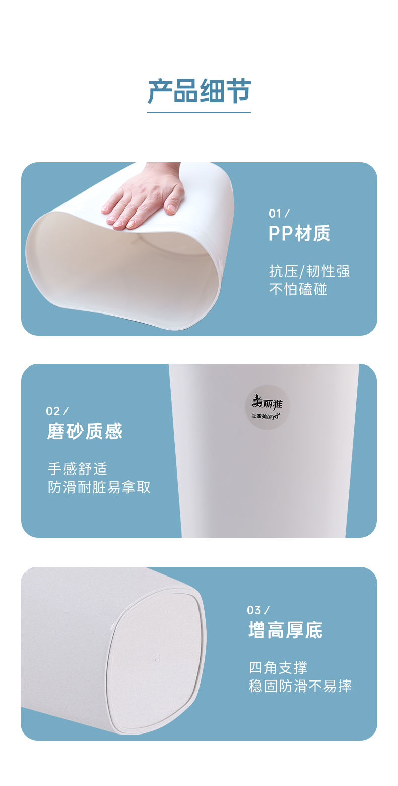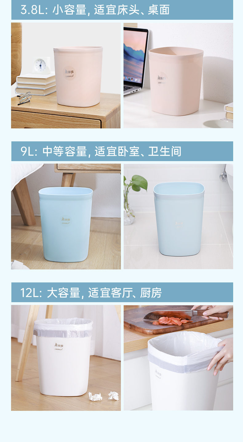 商品名称:美丽雅(MARYYA)垃圾桶炫彩圆形桶家用卫生间客厅厨房 大中小号桌面垃圾桶 白色(9L)
