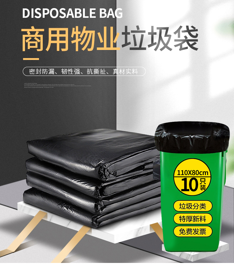 商品名称:茶花垃圾袋加厚10只黑色超大号110*80cm分类物业清洁袋垃圾桶方便收纳袋子 3208